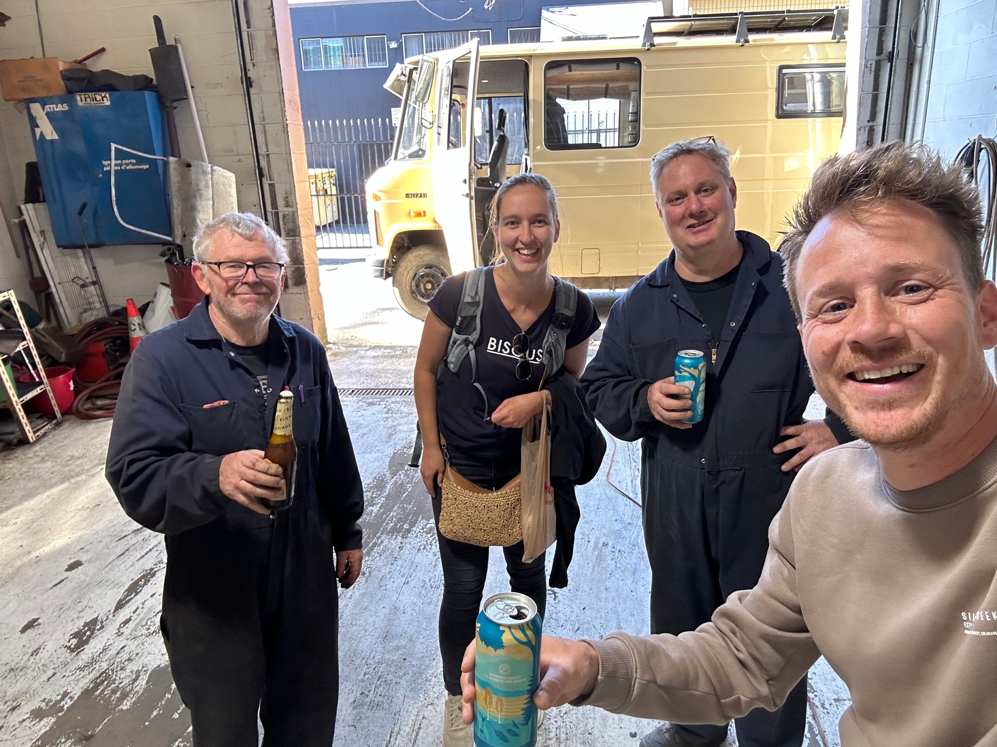Bij onze volgende afspraak waren we vol goede hoop dat het nu echt ging gebeuren, maar via onze tracker in Bruno zagen we de hele dag geen beweging. Bruno stond nog gewoon op de plek aan straat waar we hem die ochtend geparkeerd hadden. Voor de deur van de garage! Uiteindelijk werd hij om een uur of 3 de werkplaats in gereden, maar je raadt het al. Ze konden de klus niet klaren voor het einde van de werkdag. En dus moesten wij stel op sprong op zoek naar een accommodatie voor die nacht. Bruno zou de volgende ochtend zeker klaar zijn, werd ons beloofd. De volgende dag rond lunchtijd werden we toch wel een tikkeltje ongedurig en gingen we maar eens een kijkje nemen. Wat denk je? Ze waren nog druk bezig.