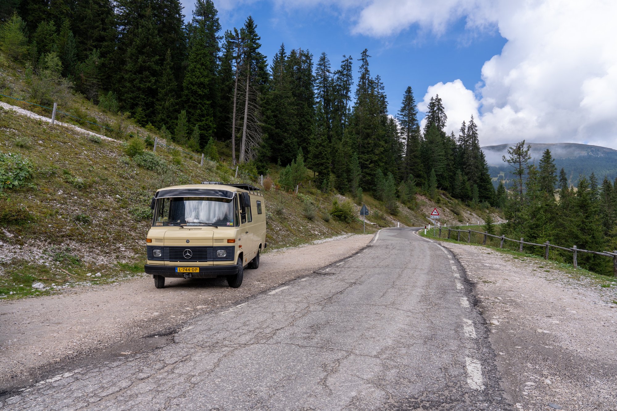 Snelwegen ga je niet vinden in de Dolomieten. Het hele gebied hangt aan elkaar van bergpassen die je al kronkelend en stijgend en dalend van A naar B leiden. De bekendste bergpassen in de Dolomieten zijn Passo delle Erbe, Passo Giau, Passo Gardena, Passo Pordoi en Passo Falzarego. Alhoewel de bergpassen steil en soms smal zijn, hoef je je geen grote zorgen te maken. Als je rustig aan doet, dan komt het echt wel goed. Zelfs met Bruno zijn we overal omhoog en naar beneden gekomen. ;-) Reserveer wel ruim de tijd om bij je bestemming te komen. Je kunt gerust een uur over een route van 30 kilometer doen als het erg kronkelig is!