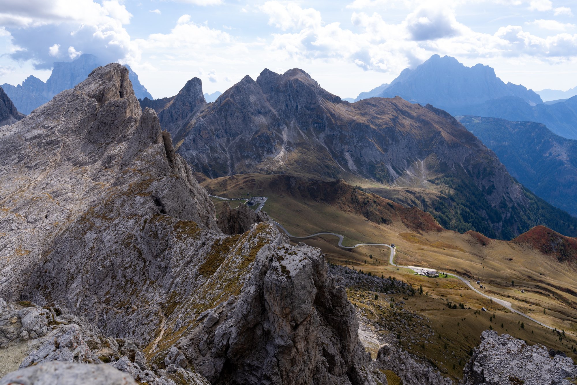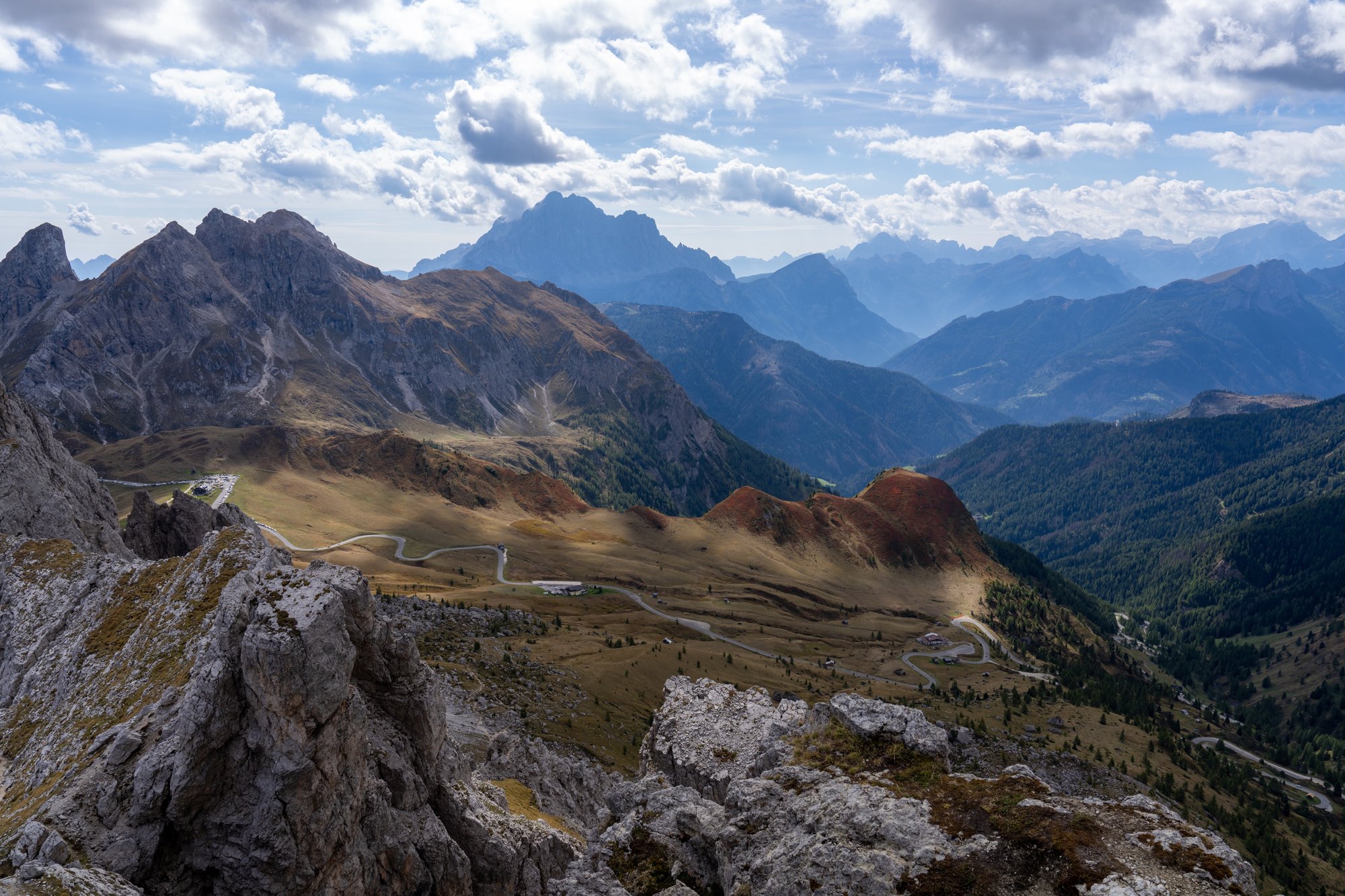 Wij kwamen vanuit Passo Falzarego naar Cinque Torri en Rifugio Nuvolau, maar in het hoogseizoen kun je ook een kabelbaan vanuit Passo Giau gebruiken om de top van deze berg te bereiken. Deze kabelbaan vind je bij Rifugio Fedare. Je stapt dan uit bij Rifugio Averau en hoeft dus alleen maar het laatste stukje (nog geen kilometer) tot Rifugio Nuvolau te hiken om van dit waanzinnige uitzicht te kunnen genieten. Wij waren eind september bij Rifugio Nuvolau en dan is de kabelbaan vanuit Passo Giau helaas al dicht, dus via Cinque Torri was onze enige optie.