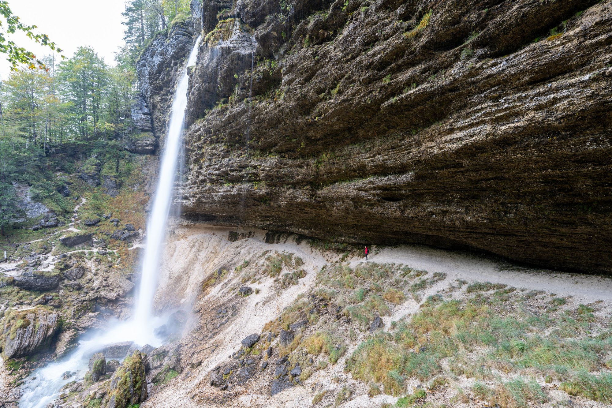 Vanaf de parkeerplaats maken we een korte klim naar boven en al snel zien en horen we de Peričnik waterval. Het water valt met zo’n kracht naar beneden dat het met veel geluid gepaard gaat. Samen met de wind is het een ruig schouwspel. Vergeet trouwens je regenjas niet, want je wordt hier nat!