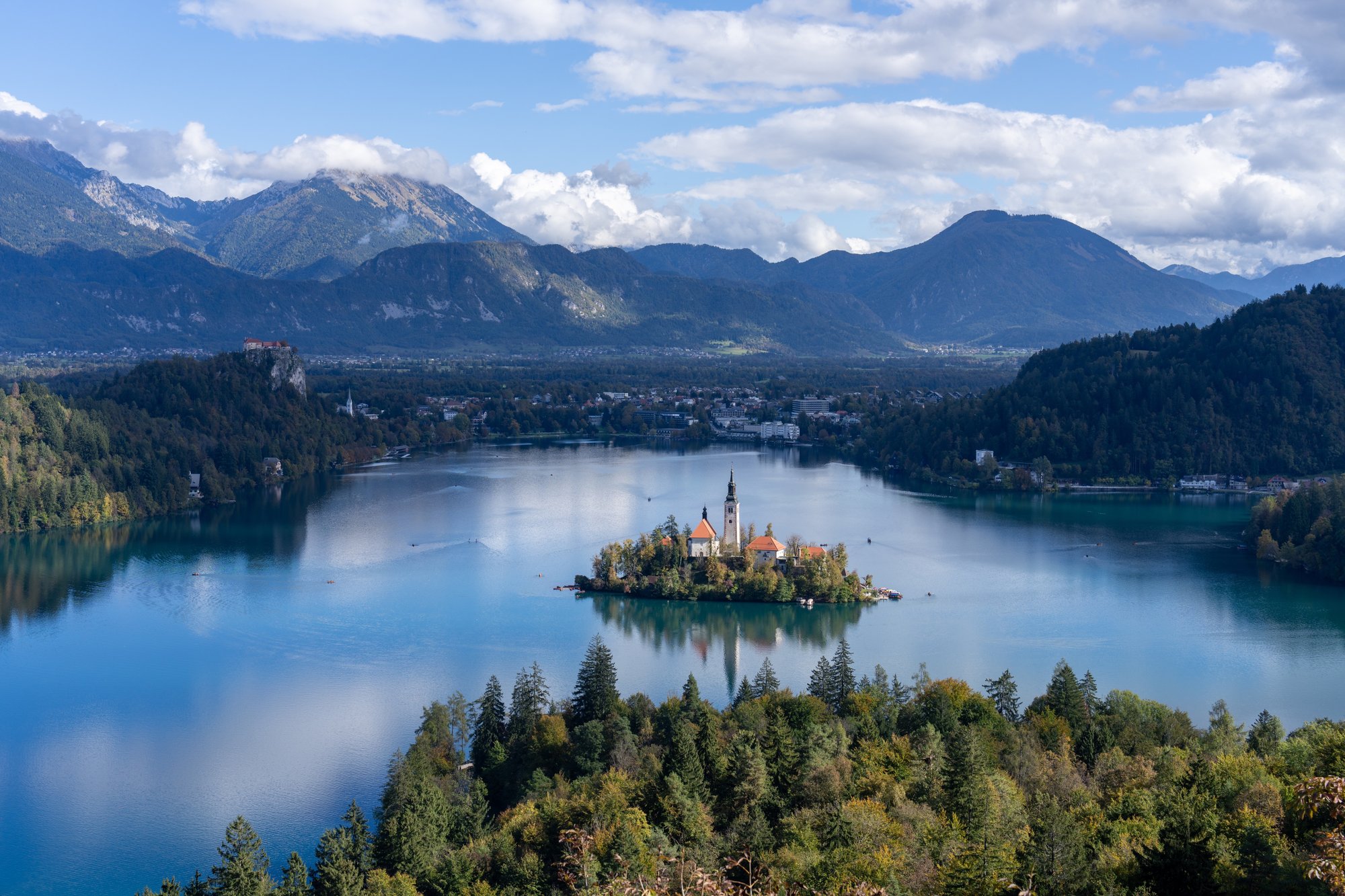 - Wij hebben Lake Bled vooral vanaf de oevers en hoger liggende uitzichtpunten bekeken, maar je kunt natuurlijk ook - heel romantisch - met een bootje het meer op gaan. Op verschillende plekken aan het meer vind je bootverhuur, zodat je roeiend het meer kunt verkennen en voet aan wal kan zetten op het piepkleine eiland.