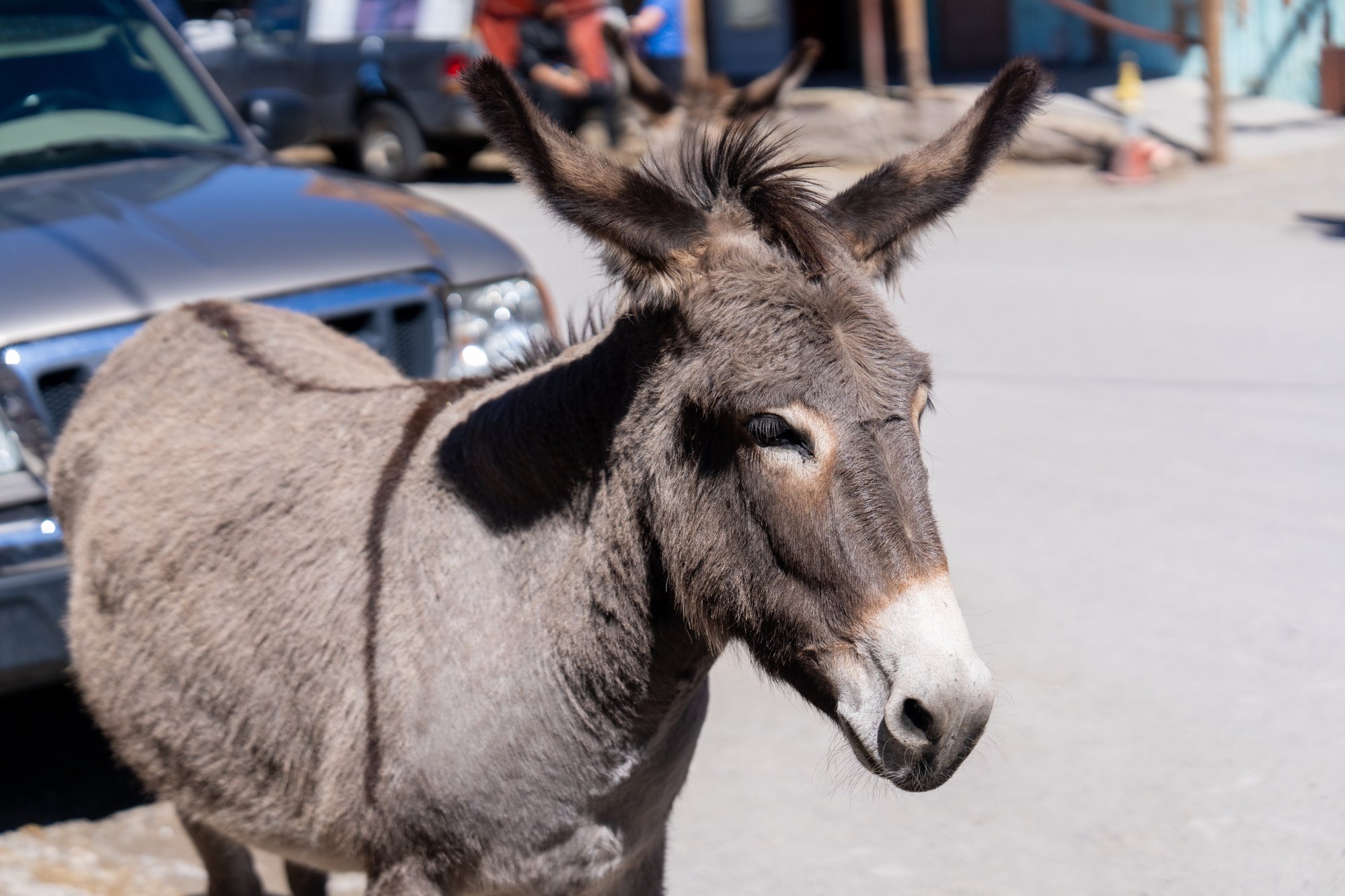 Omdat de ezels zo taai zijn, wisten ze zich heel goed staande te houden in het droge en warme gebied en is er een grote populatie aan wilde ezels ontstaan in en rondom Oatman. Dat heeft natuurlijk een aantrekkingskracht op toeristen, ook op ons!