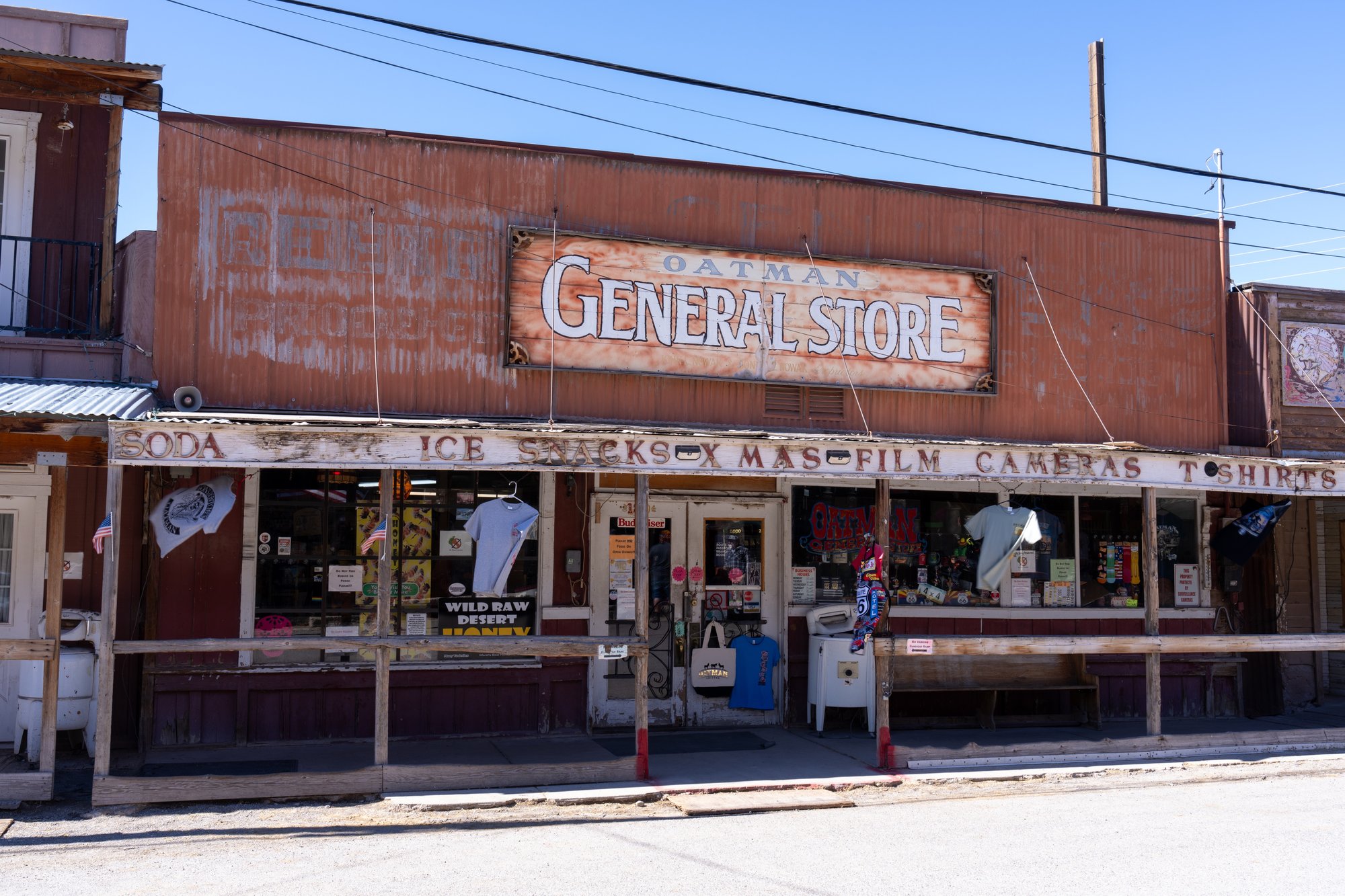Er staan nog allerlei oude gebouwen in Oatman, zoals saloons en bars. Hoewel de meeste daarvan nu zijn omgedoopt tot toeristische souvenirwinkels, is het toch leuk om door de straten van dit Wilde Westen stadje te slenteren. De sfeer klopt gewoon, nu nog steeds.
