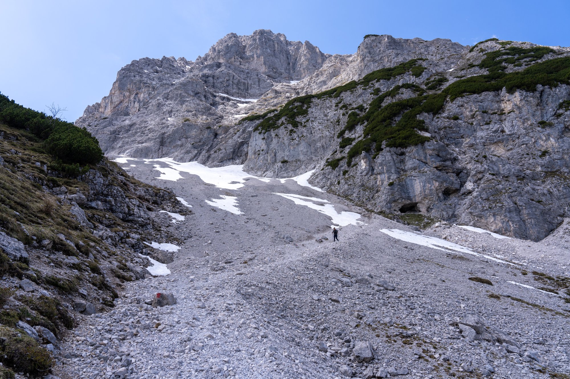 Net als toen hebben we nu trouwens ook een deadline. De kabelbaan gaat maar tot half 5 terug naar beneden… Dat zou betekenen dat we ook nog moeten haasten. Nee, doorgaan naar Hinteres Tajatörl is echt geen slim idee.