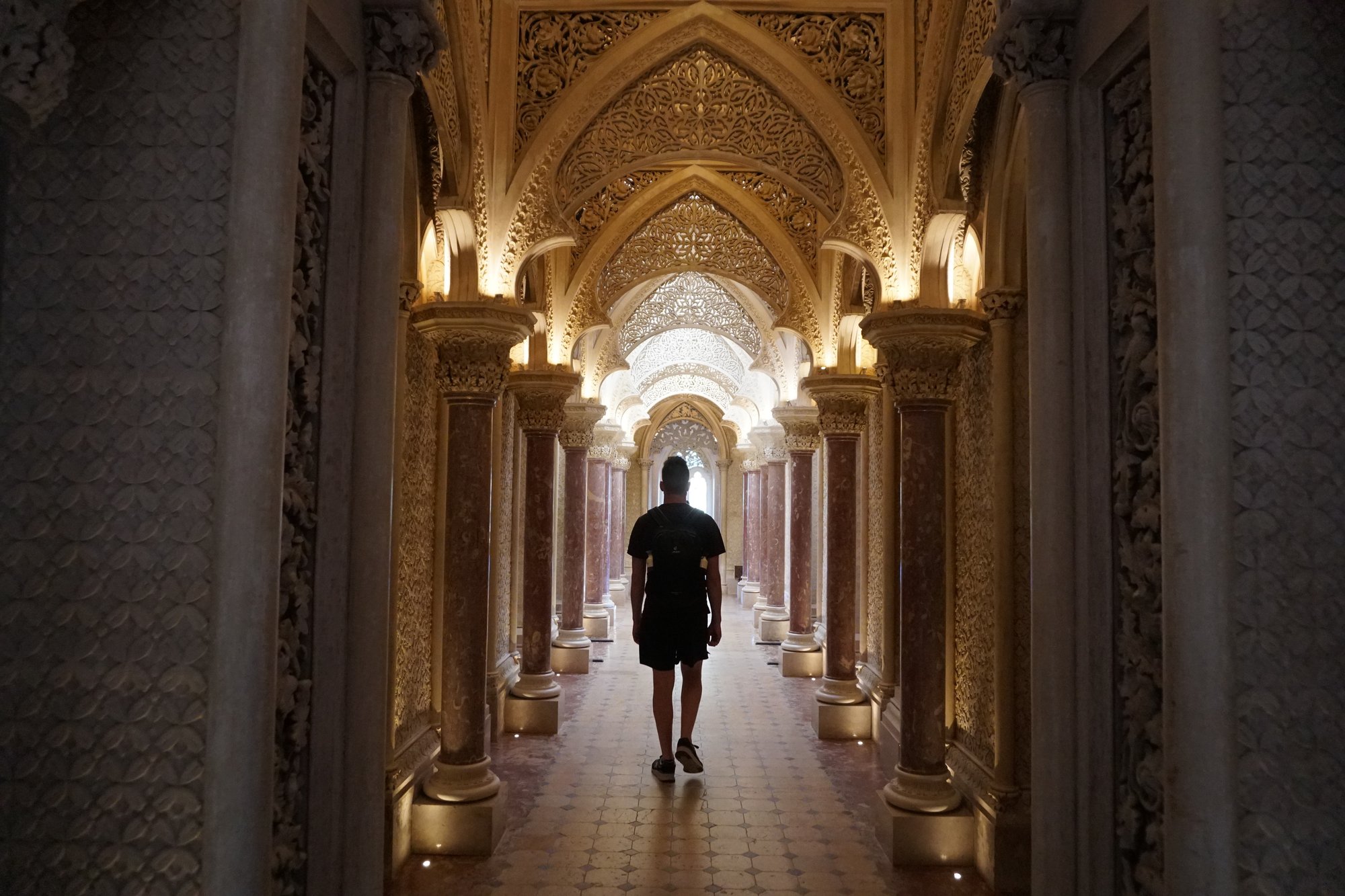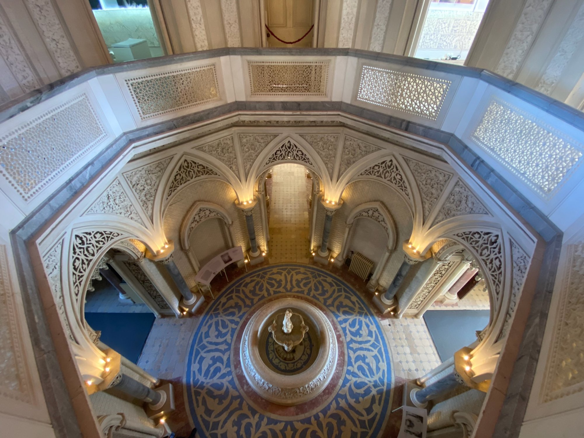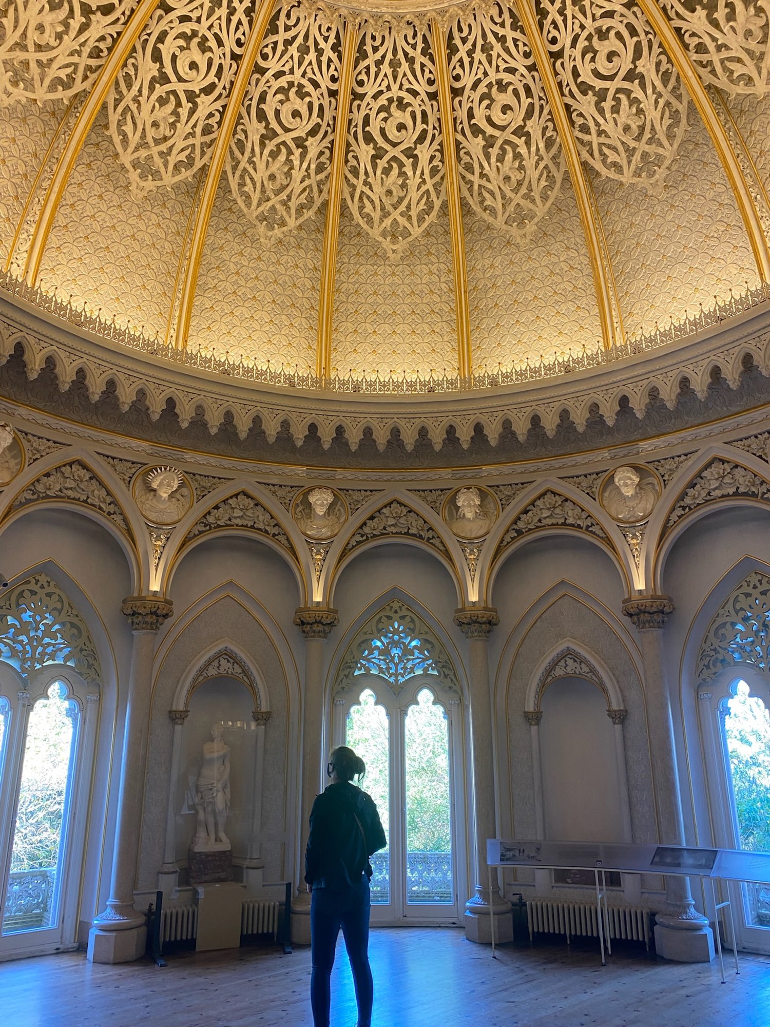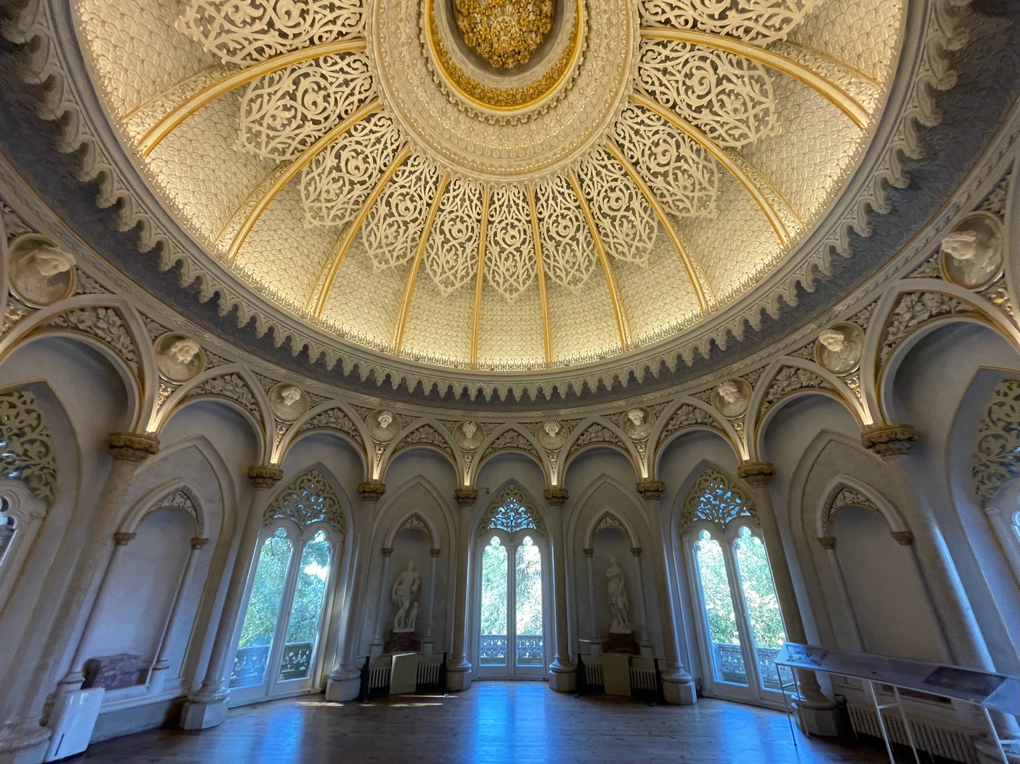 Last but zeker not least gaan we naar het Palacio de Monseratte. Dit paleis ligt wat verder van de andere highlights van Sintra af en wordt daarom minder druk bezocht, maar dat vinden wij totaal onterecht. Met de Arabische en Indische invloeden in de bouwstijl is het één van onze top favorieten in Sintra. Vooral de plafonds zijn zo mooi gedecoreerd dat je mond er van open valt.