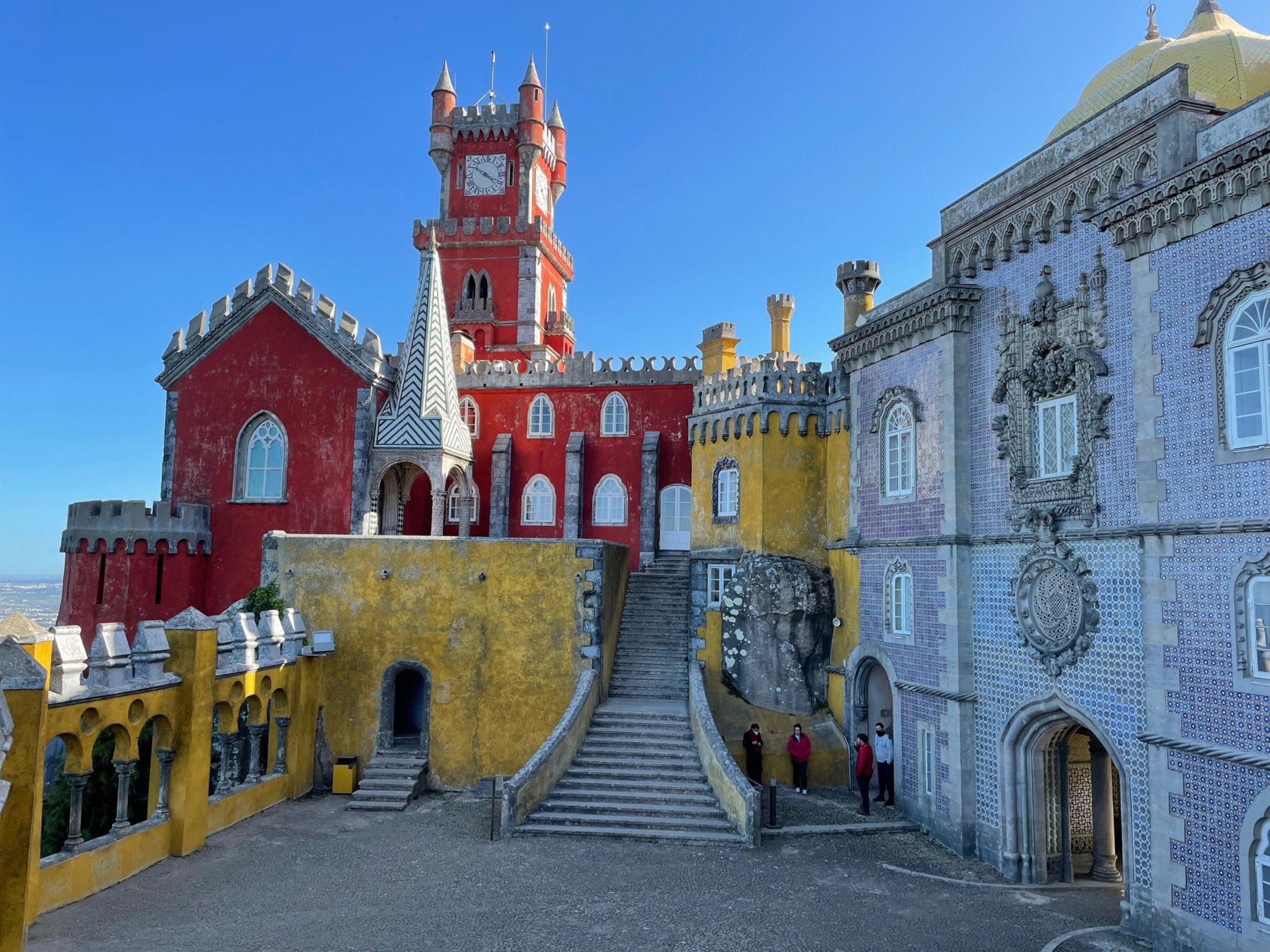 Met de felle kleuren, vele torentjes en leuke binnenplaatsen is het Palacio de Pena een echte eyecatcher. Het paleis is gebouwd in 1854 en was lange tijd het zomerpaleis van de Portugese koninklijke familie. Het paleis ligt op het hoogste punt in de omgeving (zo'n 450 meter boven zeeniveau) en vanaf alle kanten heb je daardoor een fantastisch uitzicht op de groene, heuvelachtige omgeving en de oceaan. Super tof!