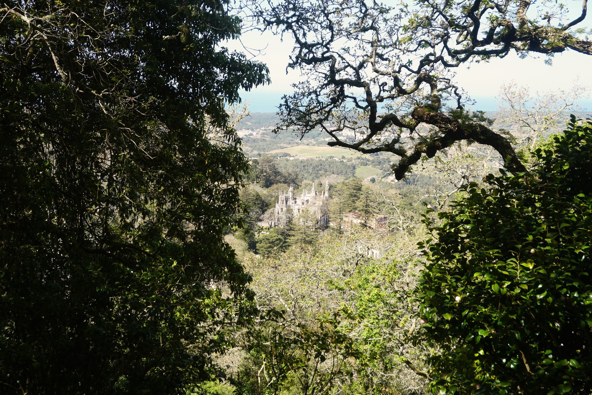 We besluiten om te voet vanaf het Moorish Castle naar Quinta da Regaleira te gaan. Dat blijkt een goede keuze, want die wandeling is heel leuk. We wandelen het grootste deel door de bossen en kijken onze ogen uit bij de enorme bomen en exotische planten. Af en toe is er een opening in alle begroeiing en zie je het historisch centrum van Sintra en Quinta da Regaleira al liggen. Echt een aanrader om te voet vanaf het Moors kasteel naar Quinta da Regaleira te gaan. Je bent er in 30 - 45 minuten en je hoeft bijna alleen maar af te dalen.