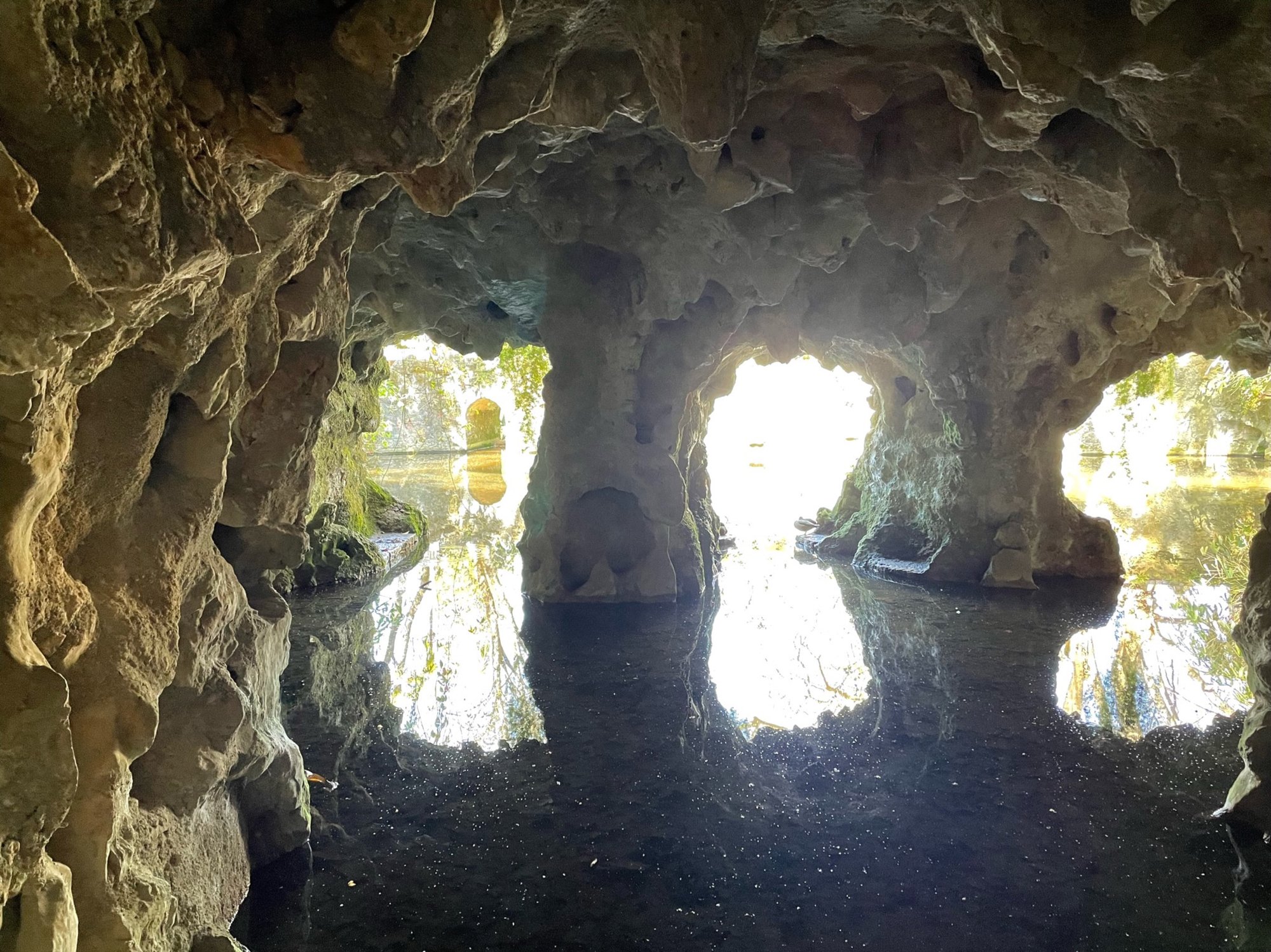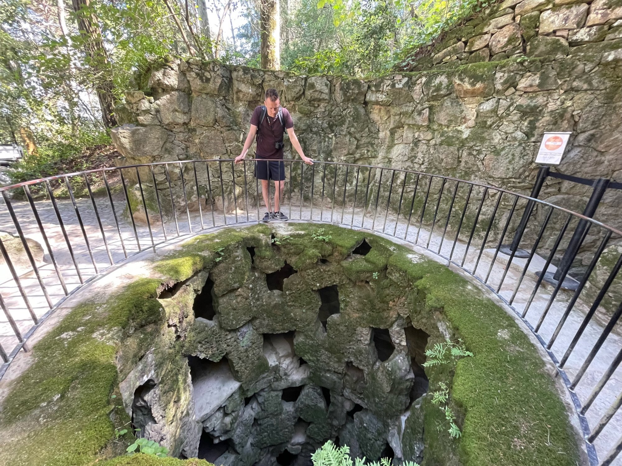 Een rijke Braziliaan heeft dit landgoed ooit laten bouwen om zijn rijkdom te laten zien. Nou, dat is gelukt! Het paleis heeft weer een hele andere bouwstijl dan de vorige twee bouwwerken die we bezochten en valt bij ons zeker in de smaak. Het heeft iets mysterieus en is een beetje creepy van buiten en dat past eigenlijk wel heel goed bij de rest van het landgoed. De tuin is groot, groen en exotisch en her en der vind je uitkijktorens, watervallen en grotten. Echt tof hier!