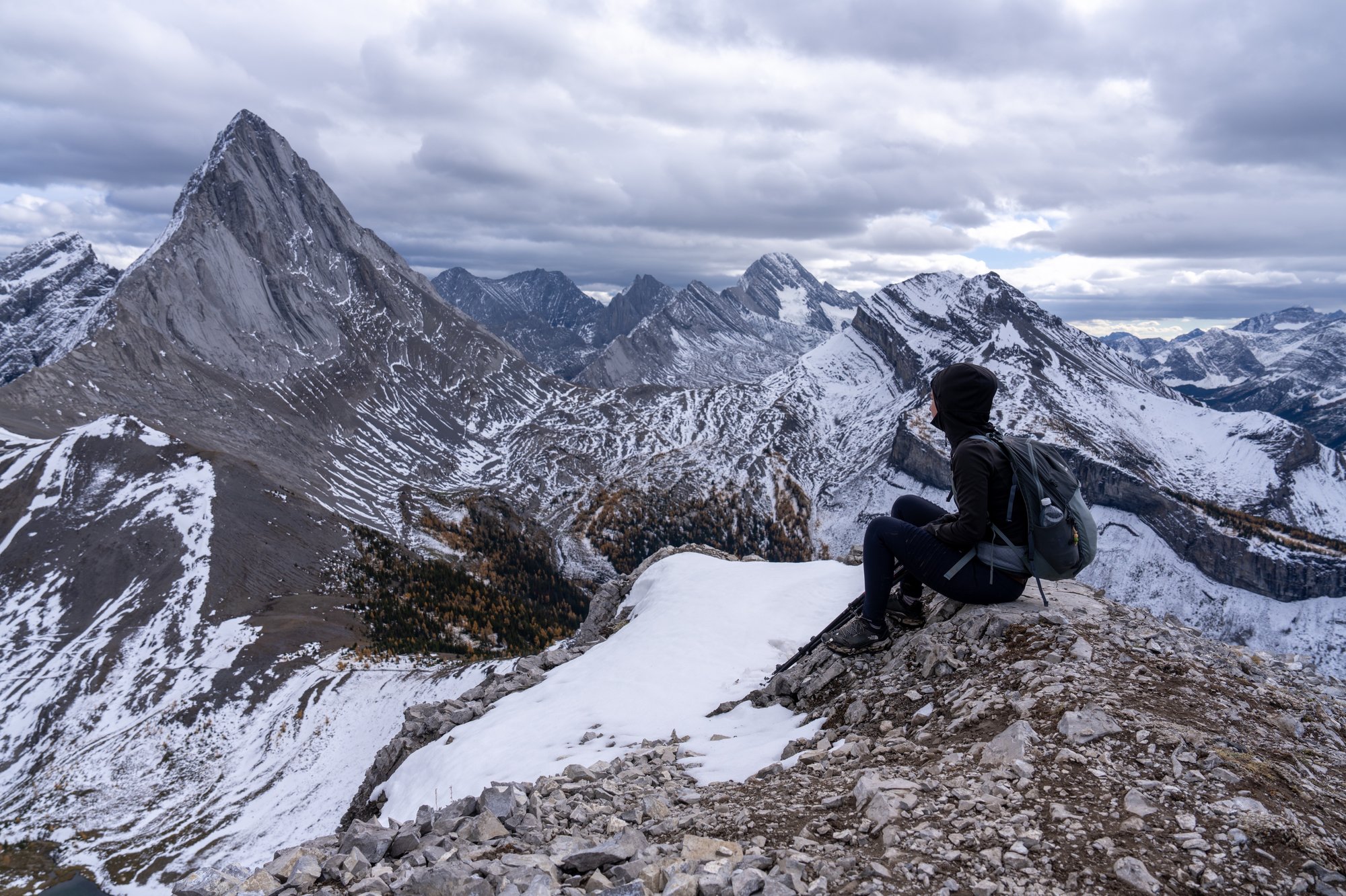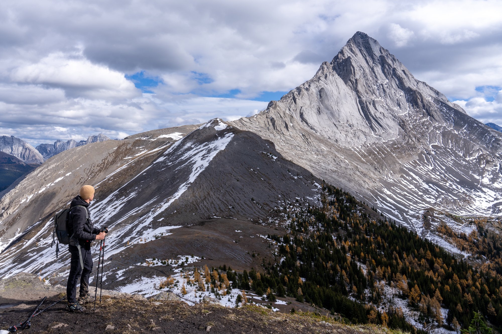 Het hikeseizoen in de Canadese Rocky Mountains liep op zijn eind. De eerste sneeuw was gevallen, de wind trok aan en de dagen werden korter. Maar we hadden nog één kans op een hike. En dat werd me er eentje! Een ruige, steile klim door adembenemend landschap met een ijzige wind als extra tegenstander. Maar eenmaal boven op Smutwood Peak, omringd door besneeuwde bergen en met Birdwood Peak als machtig middelpunt, wisten we het zeker: de Smutwood Peak Trail is de mooiste hike die we in Canada gedaan hebben.