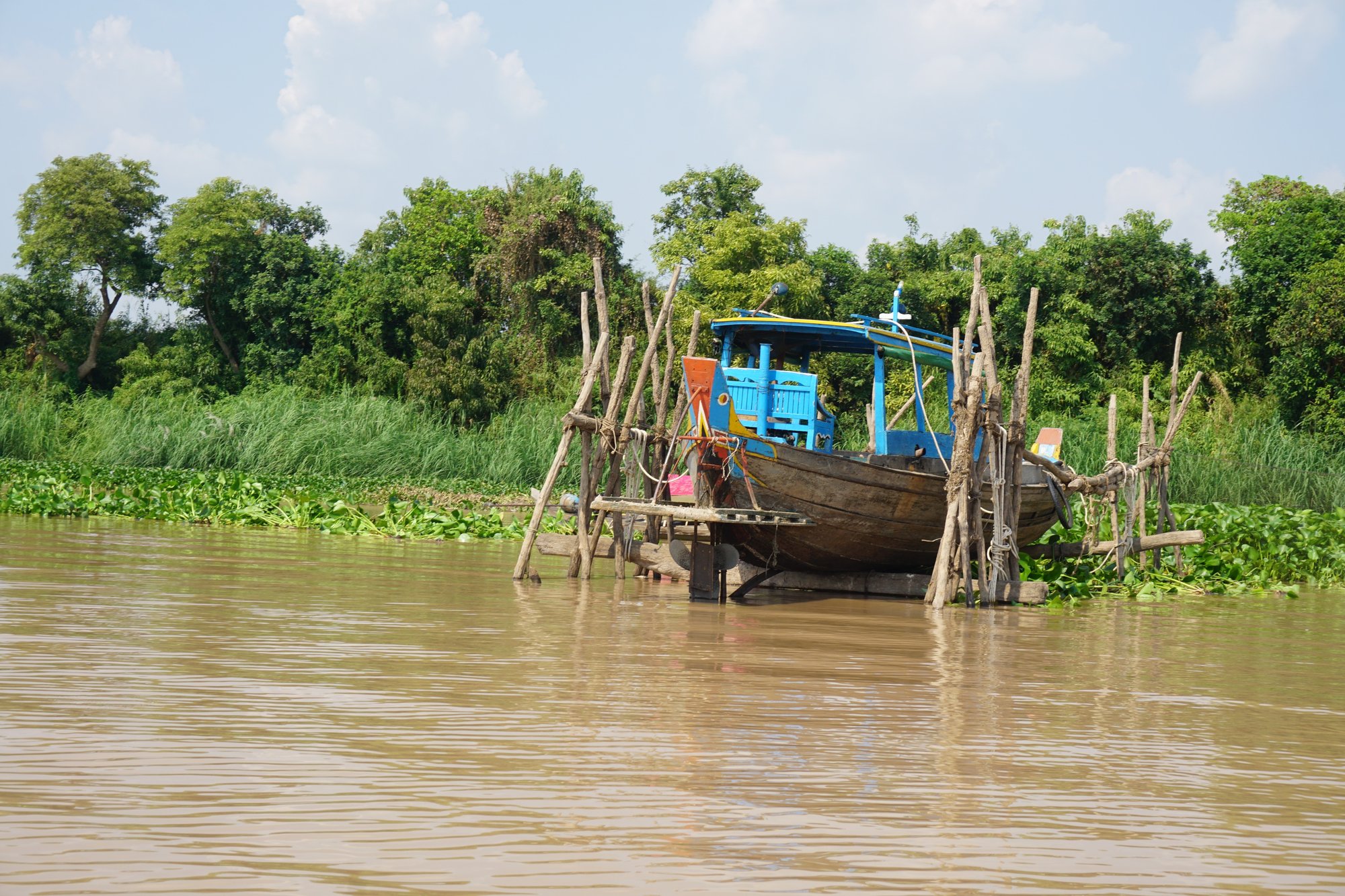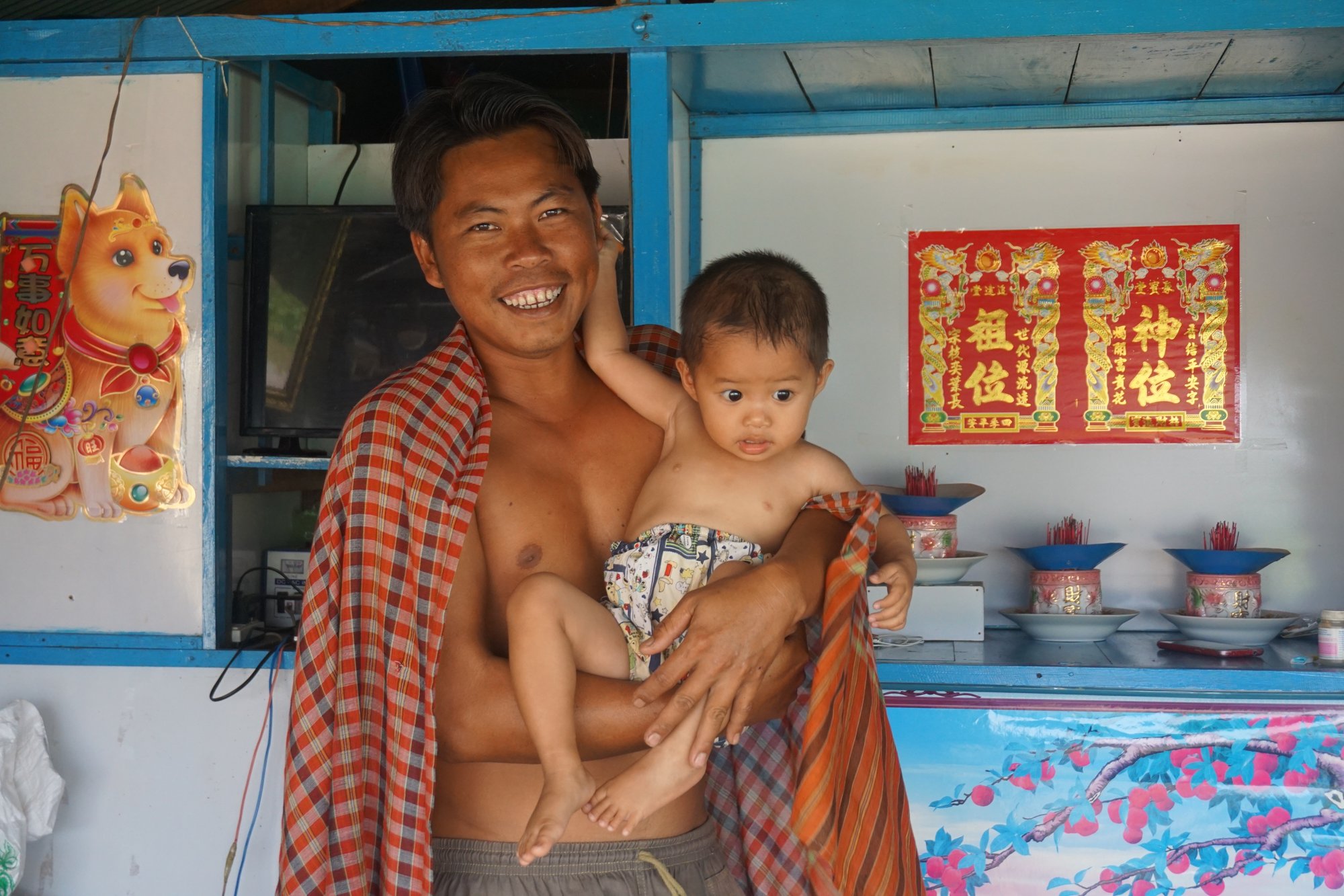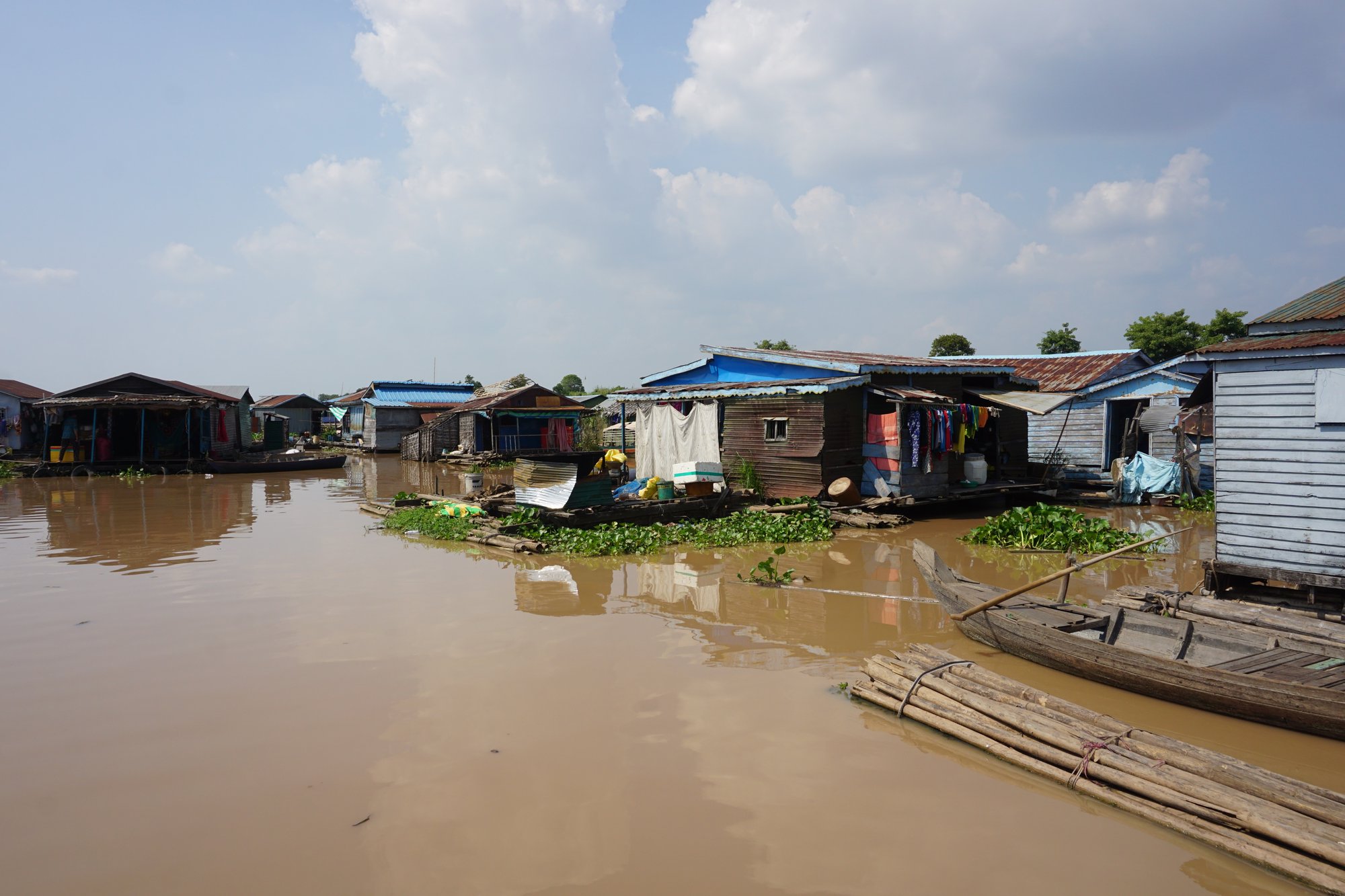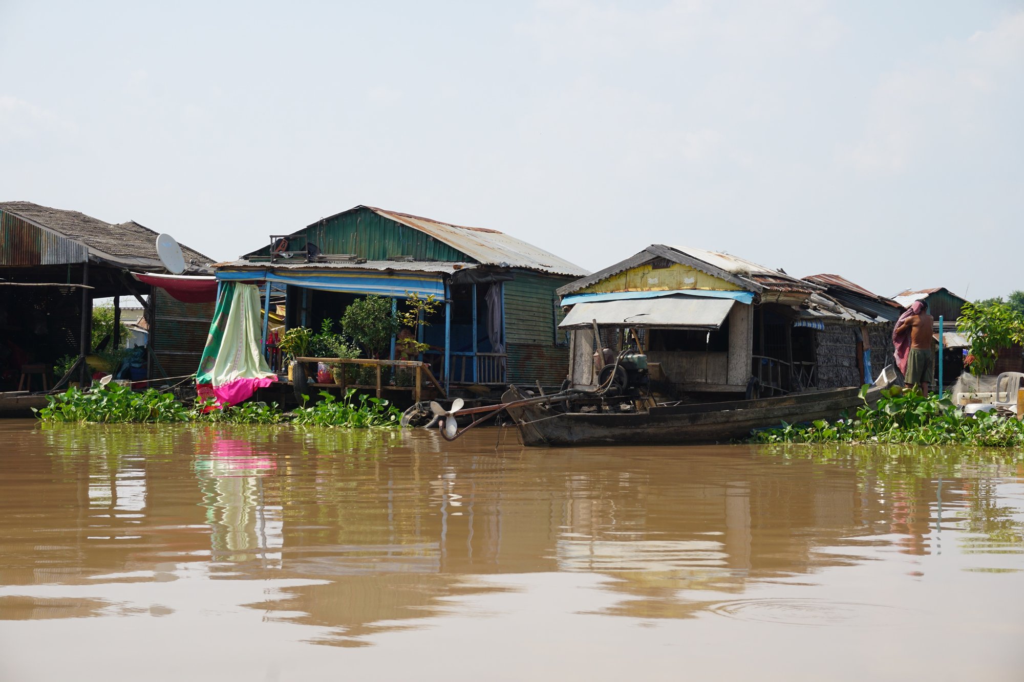 Het bijzondere aan dit dorp is dat het aan de ene kant heel vrolijk en kleurrijk is, maar tegelijkertijd zie je ook hoe hard het leven is op het water. De zon heeft vrij spel en de voorzieningen zijn heel beperkt. We zien mensen zich wassen met water uit de rivier, waar volgens mij ook alle ontlasting in terecht komt... Extra mooi is om te zien hoe hartelijk de mensen zijn. Vrolijk wordt er naar ons geroepen en gezwaaid en we krijgen zelfs wat kushandjes van kinderen.