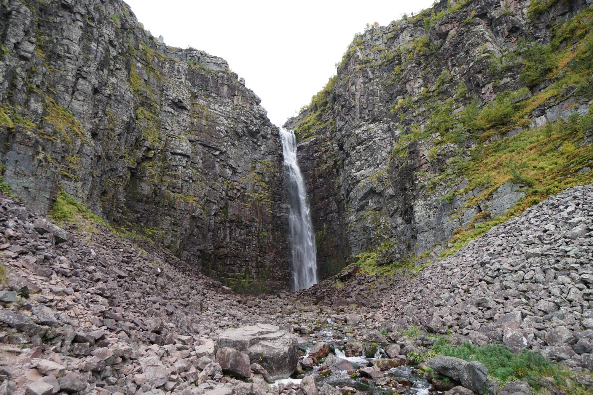 Na 2 kilometer zien we Njupeskär voor ons opdoemen. Van 125 meter hoogte valt het water naar beneden. Hoeveel watervallen je ook ziet in je leven, ze blijven iets bijzonders houden.