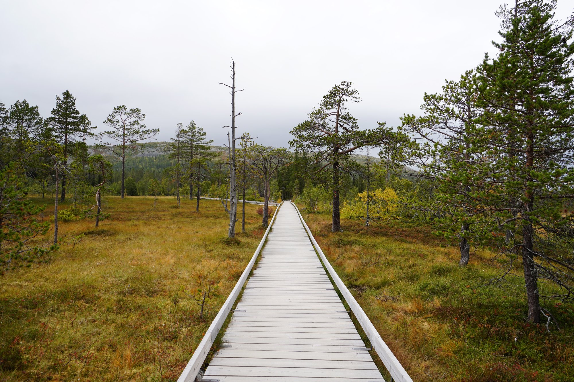 Je kunt allerlei verschillende wandelingen volgen vanaf het bezoekerscentrum. Van 3 kilometer tot tientallen of wel 100+ kilometer, je kan het zo gek maken als je zelf wil. Wij weten dat we in ieder geval de hoogste waterval van Zweden willen zien en beginnen dus met het pad die kant op.