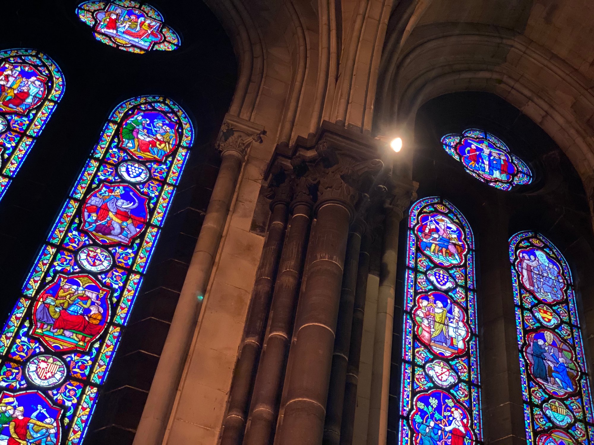 Ook Lille heeft een Notre Dame, namelijk Notre-Dame-de-la-Treille. Ik moet wel bekennen: de buitenkant van de kathedraal vonden wij echt niet zo mooi. De binnenkant is wel indrukwekkend, vooral door de grootsheid en het kleurrijke glas in lood in de Notre Dame.