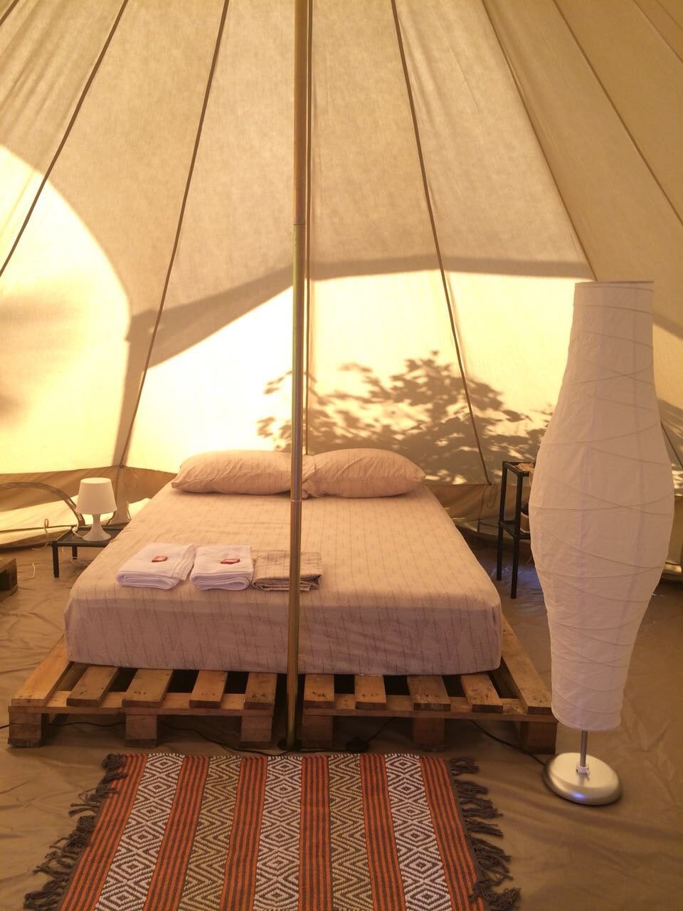 Wij hadden nooit eerder in zo’n vooropgezette tent geslapen en het is ons heel goed bevallen. Het voelt gelijk veel knusser en gezelliger dan een hotelkamer. We waren nog even bang dat de airco de hitte in de tent niet tegen kan houden, maar dat ging eigenlijk hartstikke goed.