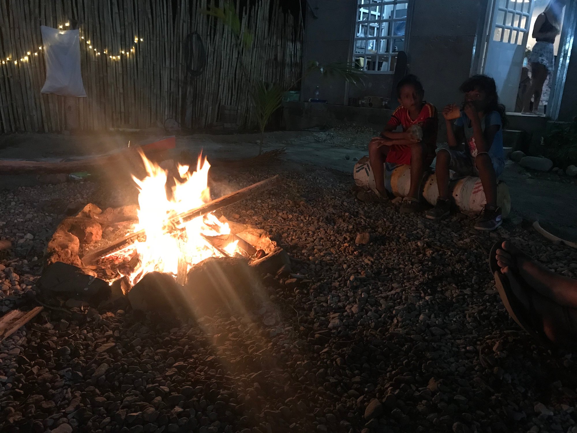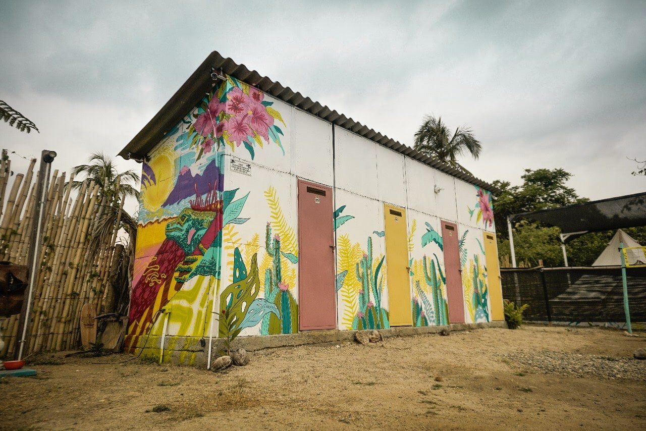 Wij houden echt van de stijl van David en Patricia. Kleurrijke details en grappige elementen - zoals een evenwichtskoord en mini pingpong-tafel - maken het terrein heel gezellig. Ronny's creatieve hart ging gelijk harder kloppen in deze omgeving. En een ander effect van deze inrichting: wij voelden ons hier gelijk thuis. Ook je privé badkamer staat op het terrein. Verder kun je een kampvuur maken, super leuk! Na overleg met David nodigden wij wat andere reizigers uit om in de avond een biertje te drinken bij het kampvuur. Knusser dan dat wordt het echt niet!
