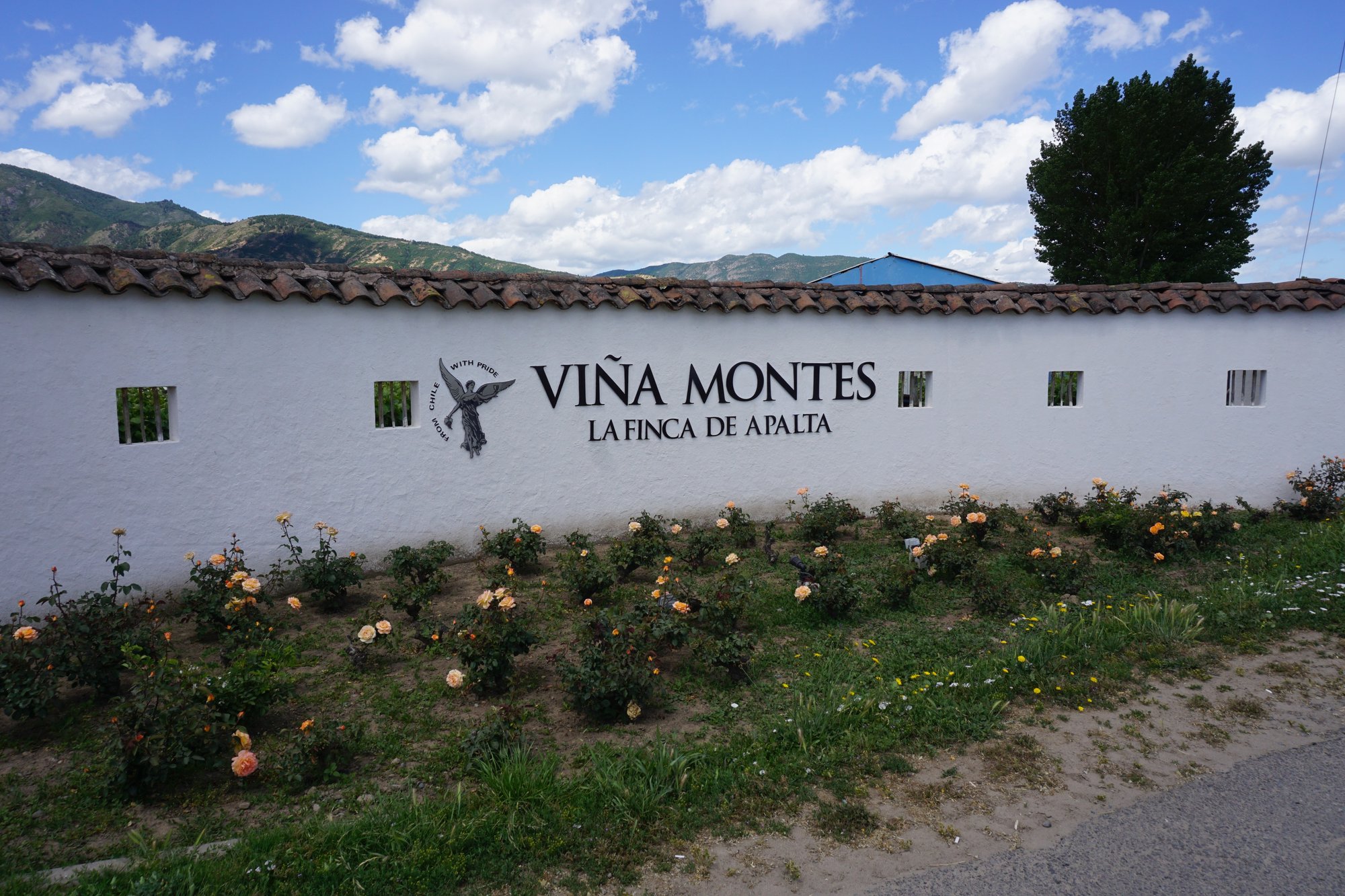Dat was een leuk begin van de dag. Na de tour en proeverij stappen we weer op de fiets om naar het volgende adres te fietsen: Viña Montes. Dit landgoed is chique en straalt direct allure uit. Komen wij daar op ons fietsje aan op onze afgetrapte Allstars… :-) Maar gelukkig zijn we daar niet zo gevoelig voor. We worden heel vriendelijk ontvangen en krijgen ook nu weer een rondleiding en uitleg. Vanaf het dak van het gebouw heb je een heel mooi uitzicht over de wijnvelden. Indrukwekkend!