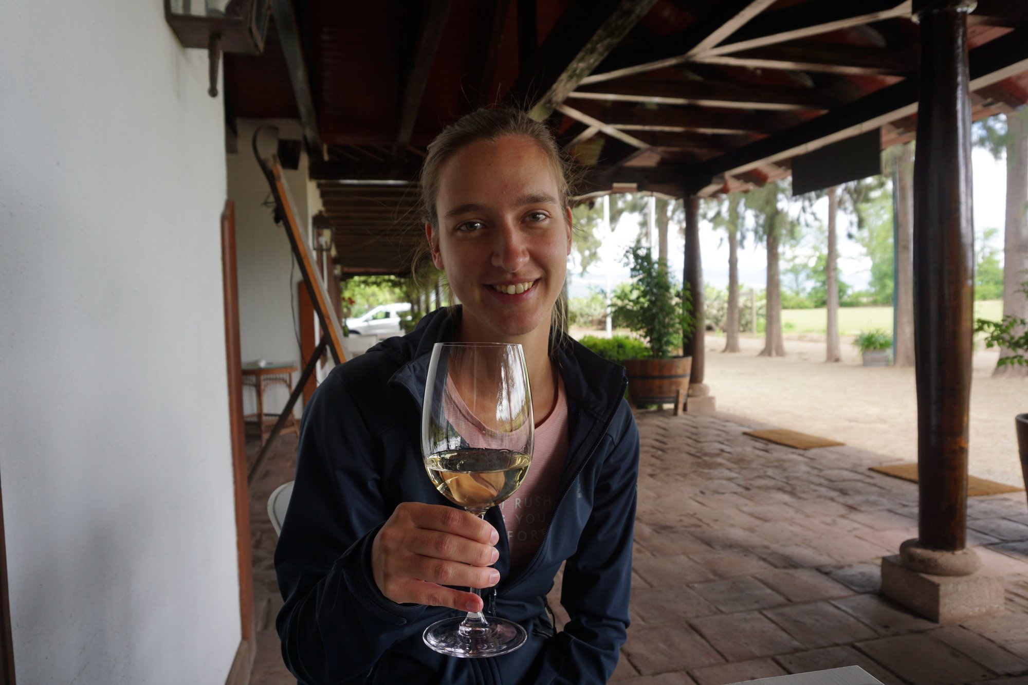 Daarna gaan we nog even lekker op het terrasje zitten bij Laura Hartwig en proeven we hun complexere rode wijnen. Ook weer een schot in de roos! Onze favorieten bij Laura Hartwig waren de Carmenere en de Malbec, maar we besluiten om een fles van de Chardonnay te kopen. Die kunnen we morgen lekker opdrinken in Santiago, waar het nu erg warm weer is. Daar past deze wijn perfect bij! Bij het afrekenen krijgen we nog een beetje korting. Niet alleen de wijnen bij Laura Hartwig waren top, het personeel was ook zo vriendelijk en gastvrij!