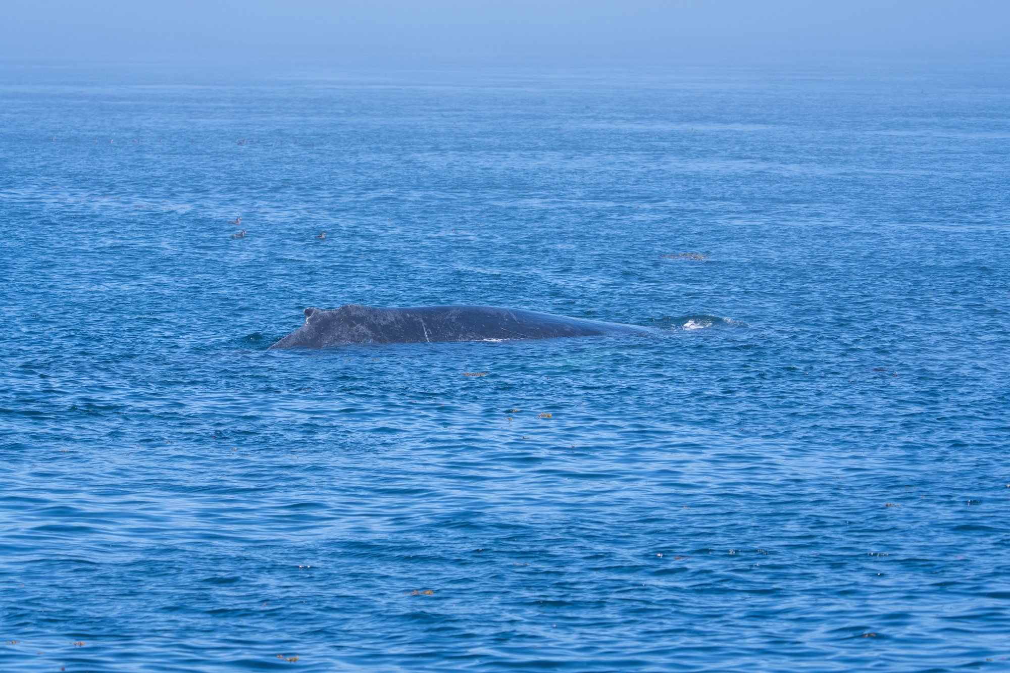 En dan ineens horen we een walvis spuiten en zien we een bultrugwalvis. Hij blijft een tijdje in onze buurt zwemmen, waardoor we hem goed kunnen volgen. Twee keer trakteert hij ons op ‘de staart’. Na een tijdje komt er nog een andere bultrug bij en kijken we naar deze gigantische beesten in het water. Iedereen is stil en verwonderd. Een sereen moment!