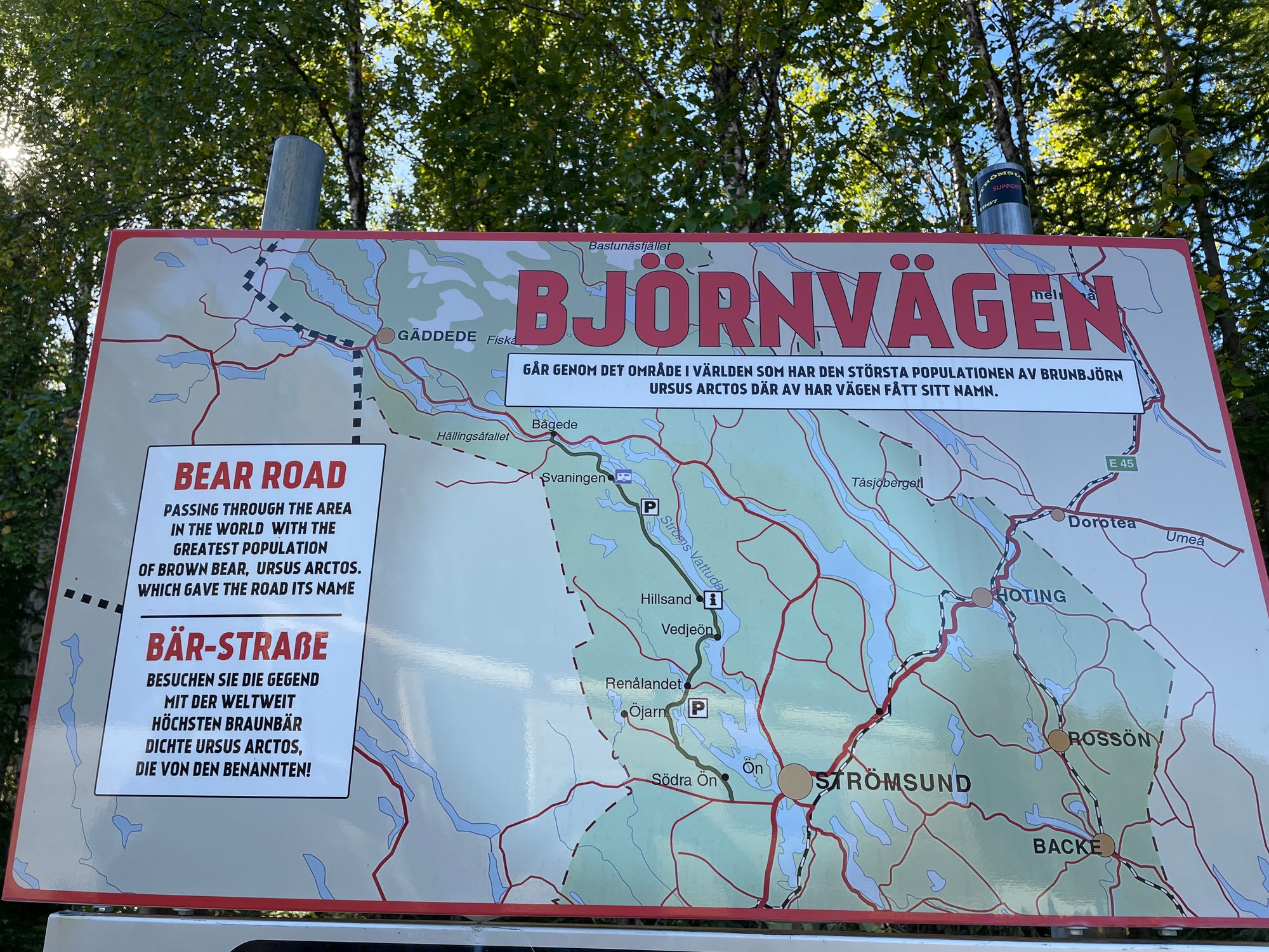 Eigenlijk is dit geen stop, maar een alternatieve route voor het laatste deel van de Vildmarksvägen. Je kunt vanaf Bågede namelijk van de ‘hoofdweg’ afwijken en een weg kiezen die redelijk parallel loopt aan de hoofdweg, maar meer door de wildernis gaat. De weg heeft de naam Björnvägen (berenweg) gekregen, omdat je hier de grootste populatie bruine beren ter wereld vindt!