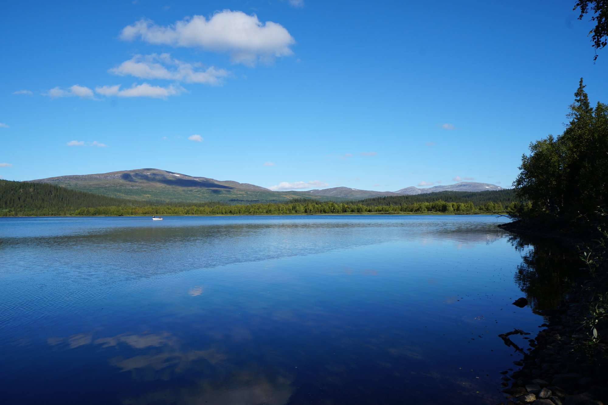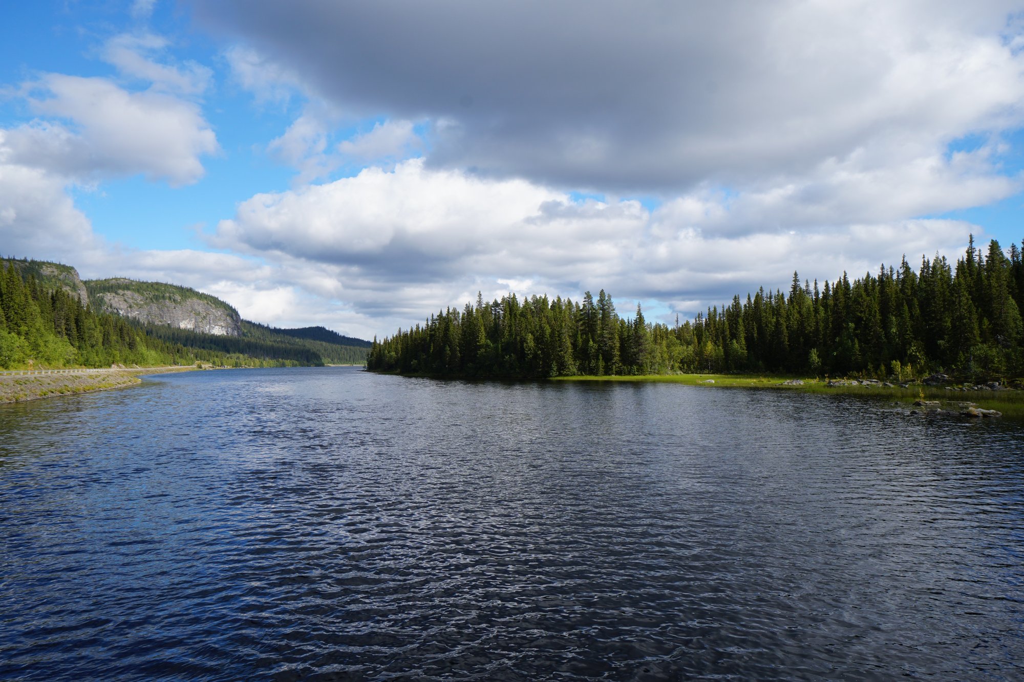Wat hebben we geluk. We starten onze roadtrip over Vildmarksvägen met stralend weer en de voorspelling is dat dit de komende dagen zo gaat blijven. Heerlijk! De eerste tientallen kilometers zijn nog niet zo spannend. Het aantal huizen wordt langzamerhand minder en de omgeving steeds meer bossen en water. Typisch Zweeds dus. ;-) We maken een lunchstop bij de Kultsjöån rivier. Het is heel rustig op de weg, de rivier stroomt vlak langs de parkeerplaats en overal om ons heen is het groen. Het gaat beginnen!