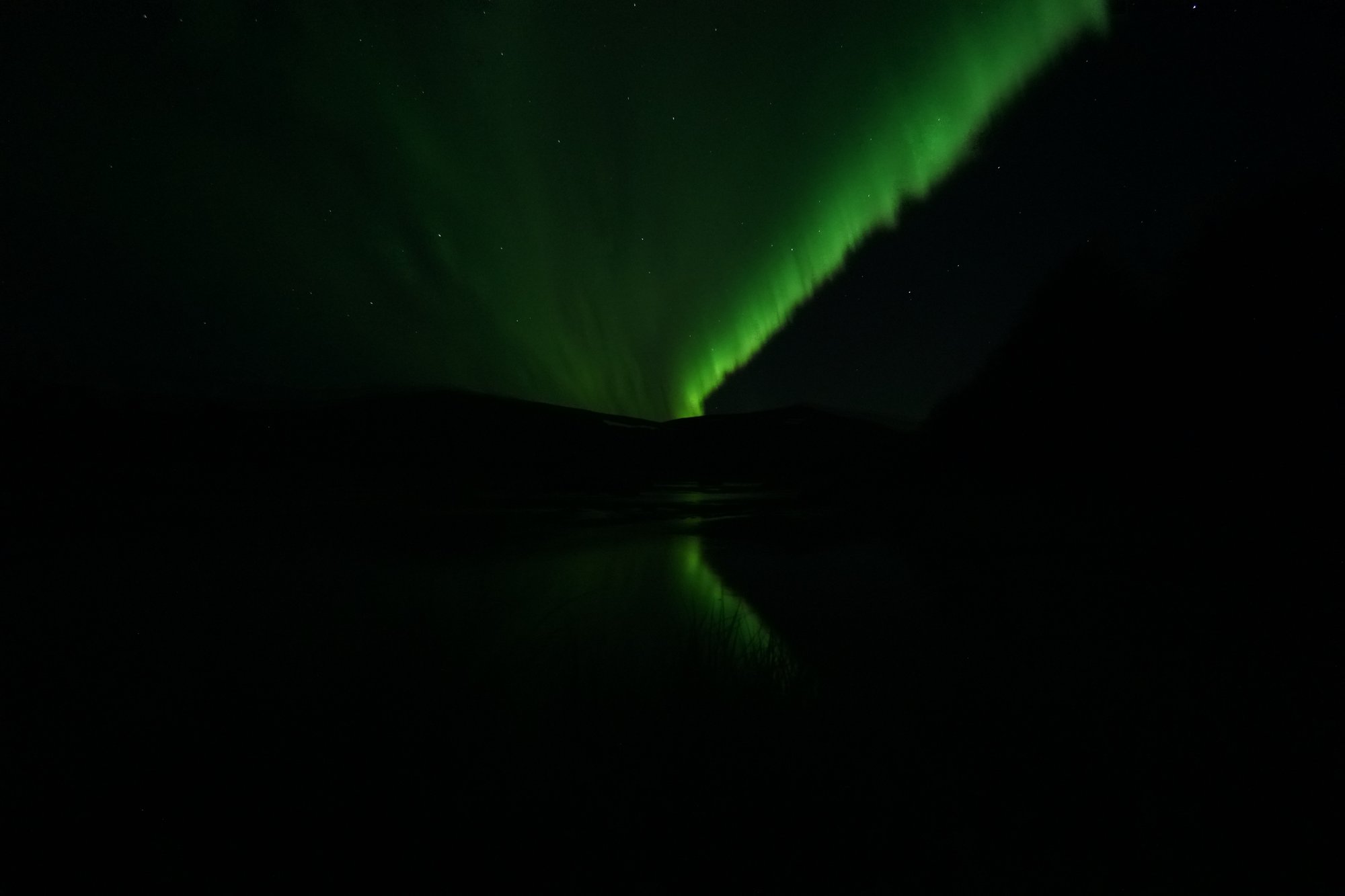 Deze plek was sowieso al fijn, maar kreeg die nacht helemaal een speciaal plekje in ons hart. Hier zagen we voor het eerst in ons leven het Noorderlicht! We stonden op het punt om te gaan slapen toen Ronny ineens zei: “Volgens mij zie ik een klein beetje Noorderlicht!” Natuurlijk haastten we ons naar buiten en inderdaad, moeder natuur trakteerde ons op een ware lichtshow.