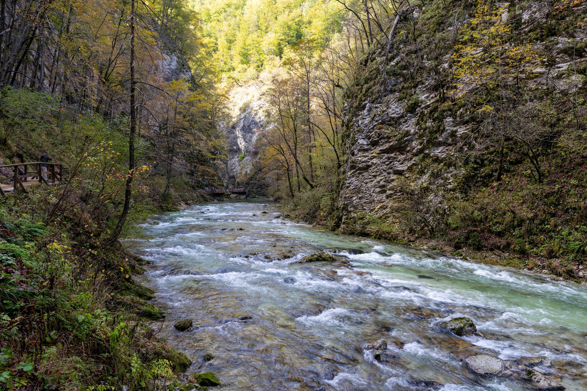 Wij bezochten de Vintgar Gorge in oktober. Fris, maar toch leuk, want de herfstkleuren maken de kloof nog net wat interessanter.