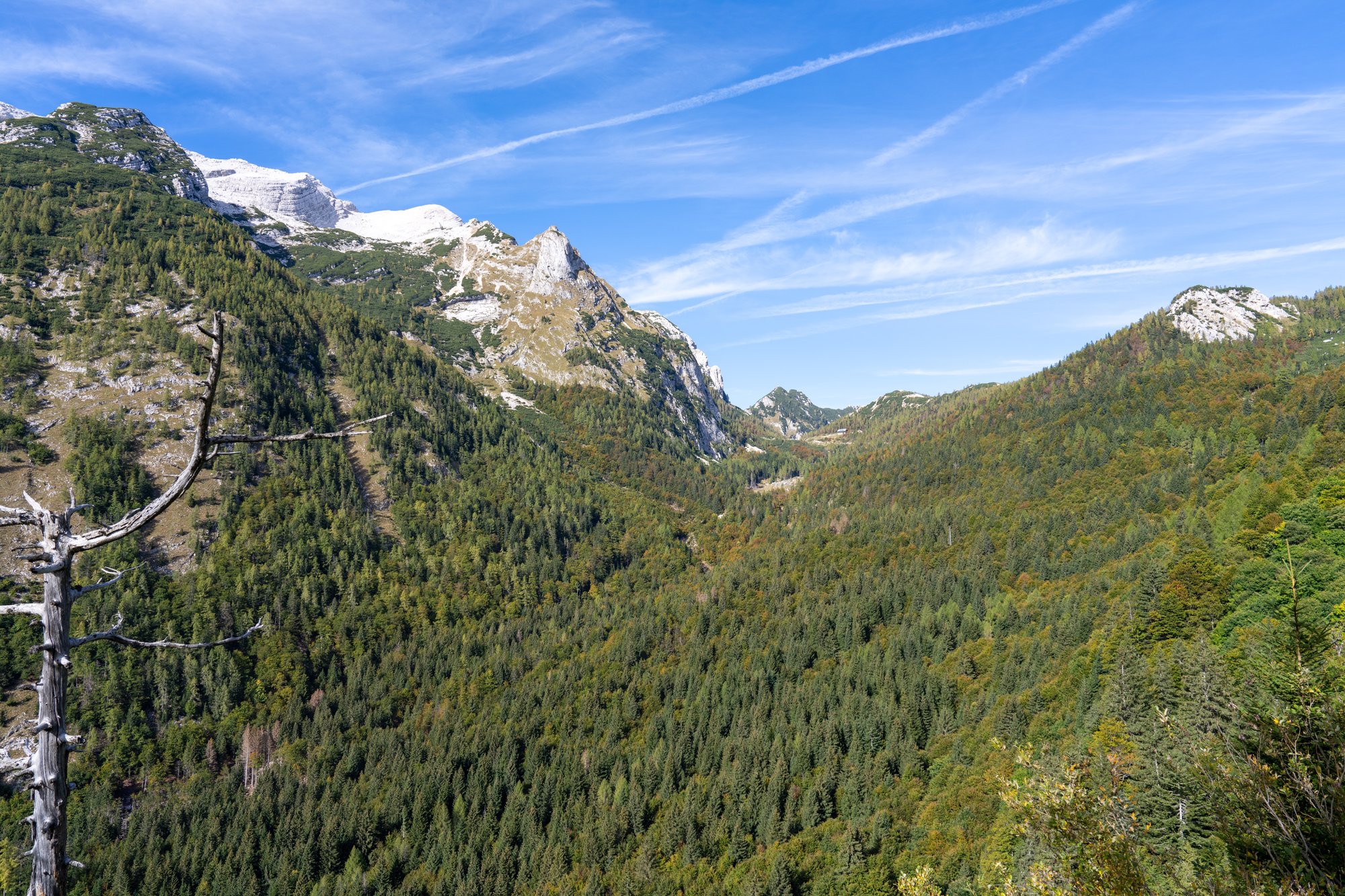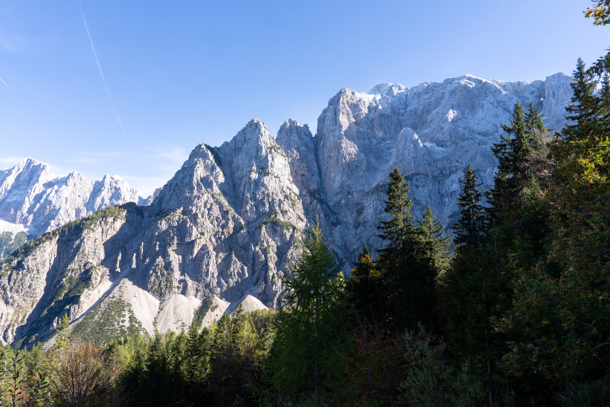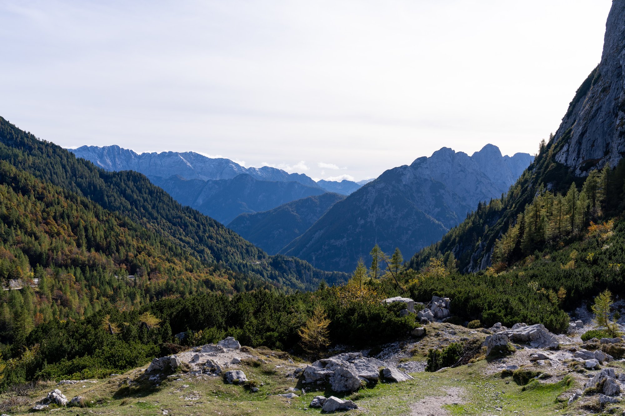 We kunnen deze imposante bergen en de prachtige herfstkleuren even rustig in ons opnemen bij het Supca Viewpoint. Vanaf hier heb je uitzicht over de natuur van het Triglav National Park. In de verte zien we de vallei waar we net vandaan komen en als we dan kijken hoe hoog we nu staan, dan maakt ons dat nog trotser op onze oersterke Bruno.