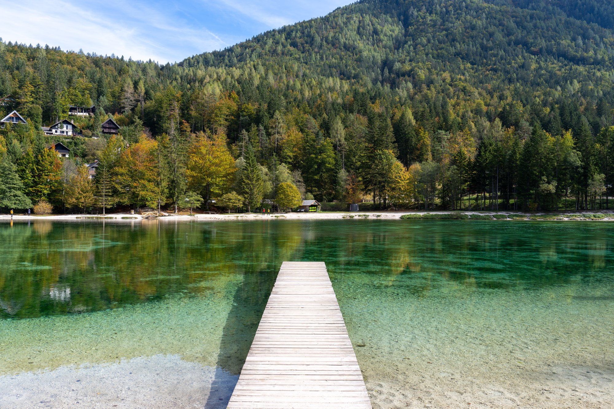 De afdaling gaat verder en voor we het weten ligt de Vršič Pas alweer achter ons. Maar voordat we Kranjska Gora - het stadje waar de bergpas officieel eindigt - bereiken, stoppen we nog even bij Lake Jasna. Dit meer heeft een groene kleur en is een mooie locatie voor een korte wandeling. Even de benen strekken na die 50 haarspeldbochten!