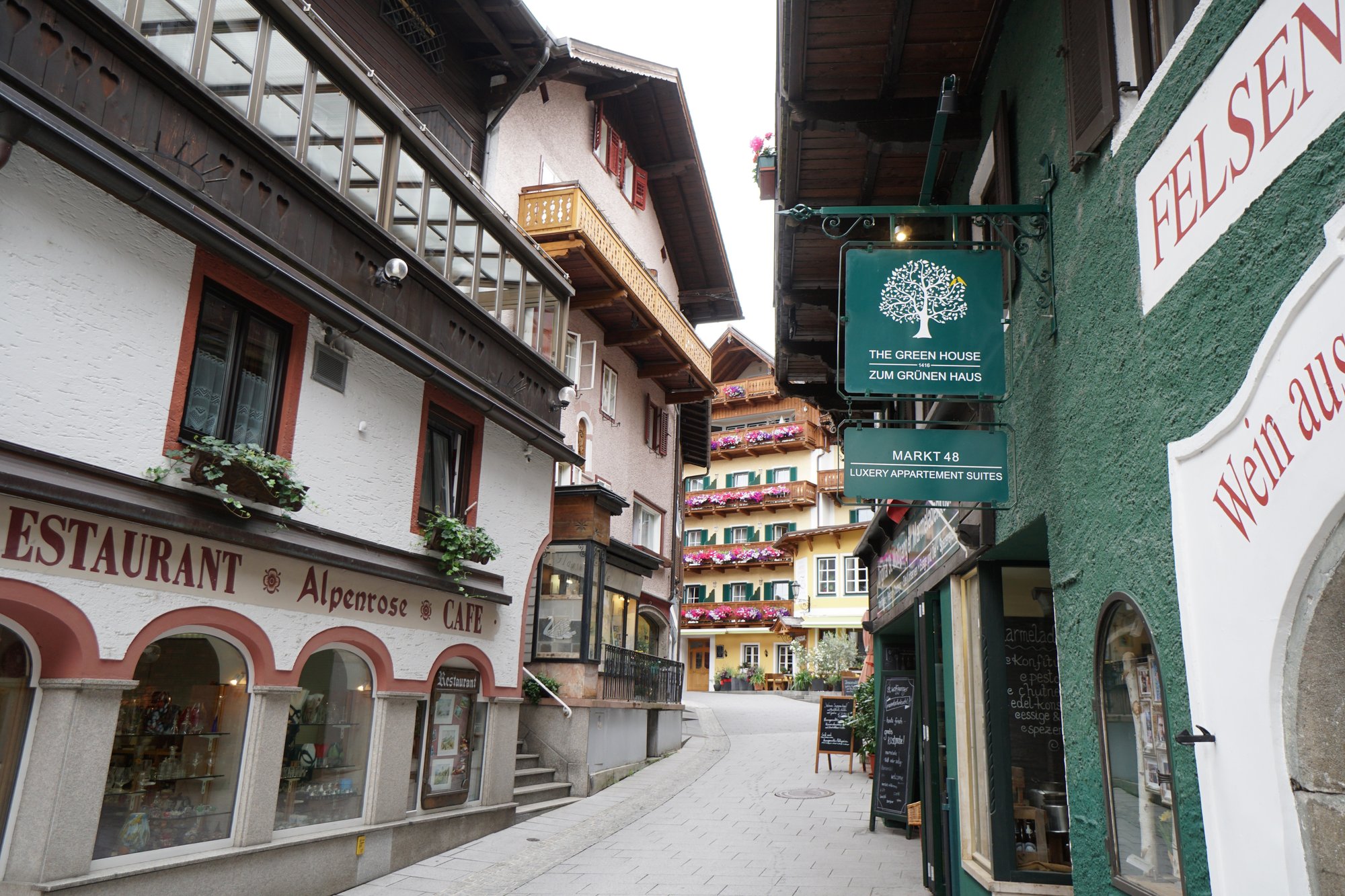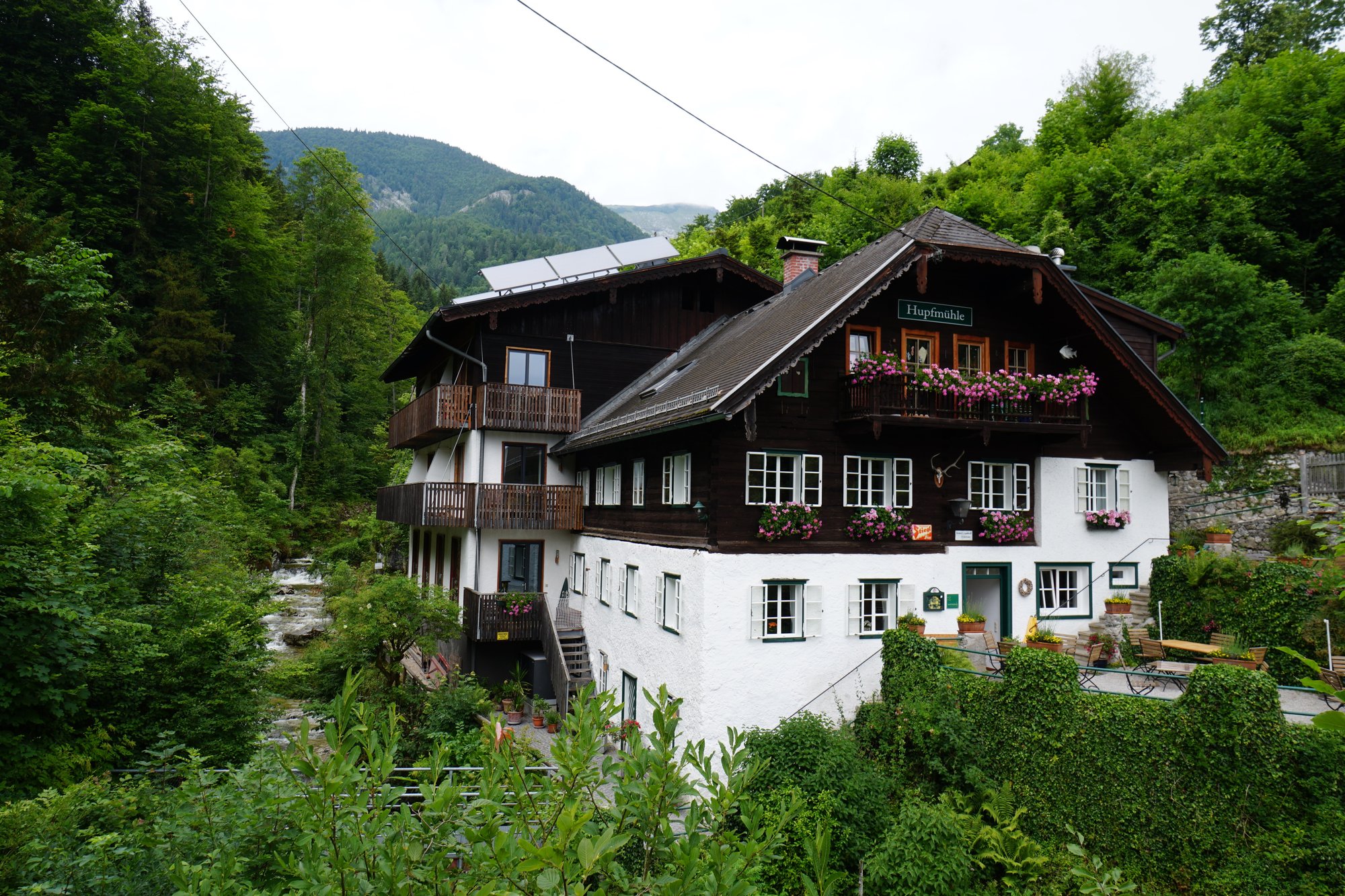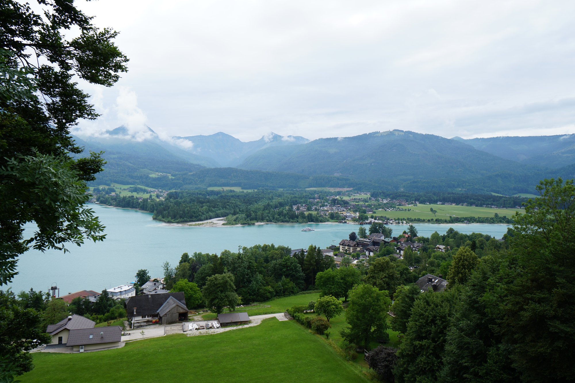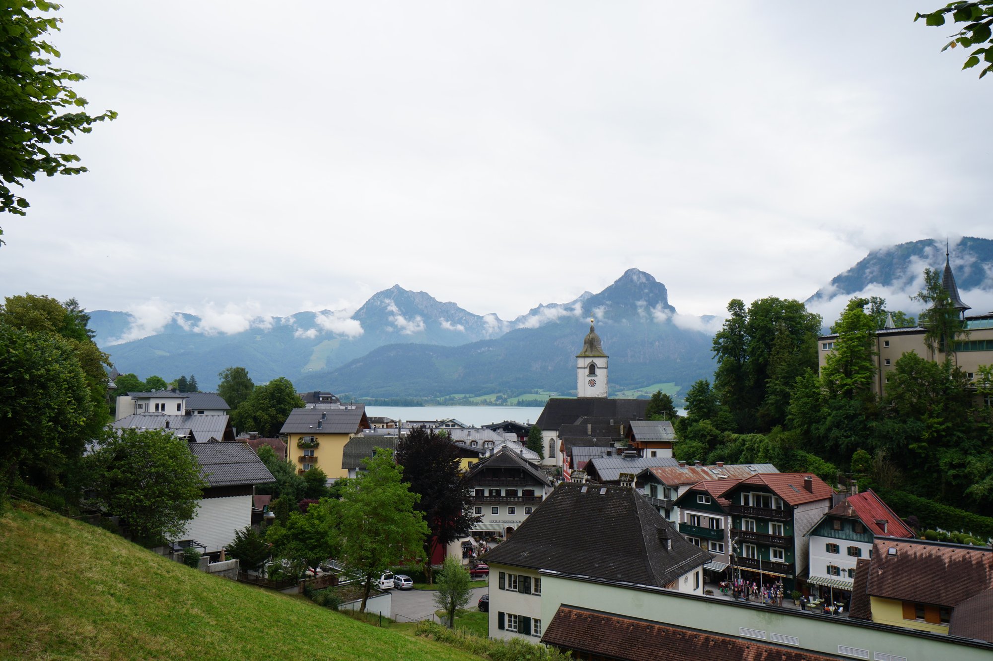 Helaas worden we die ochtend wakker door de regendruppels die op het dak tikken. De lucht is helemaal grijs en de wolken hangen laag in het dal. Als we op de webcam van de Schafbergbahn kijken, zien we dat nu omhoog gaan geen enkele zin heeft. Je ziet he-le-maal niks. In de loop van de dag verdwijnen de buien, maar de wolken blijven. We besluiten iets anders te gaan doen, want bijna €100 betalen voor een heel beperkt uitzicht vinden we toch wat te gek.