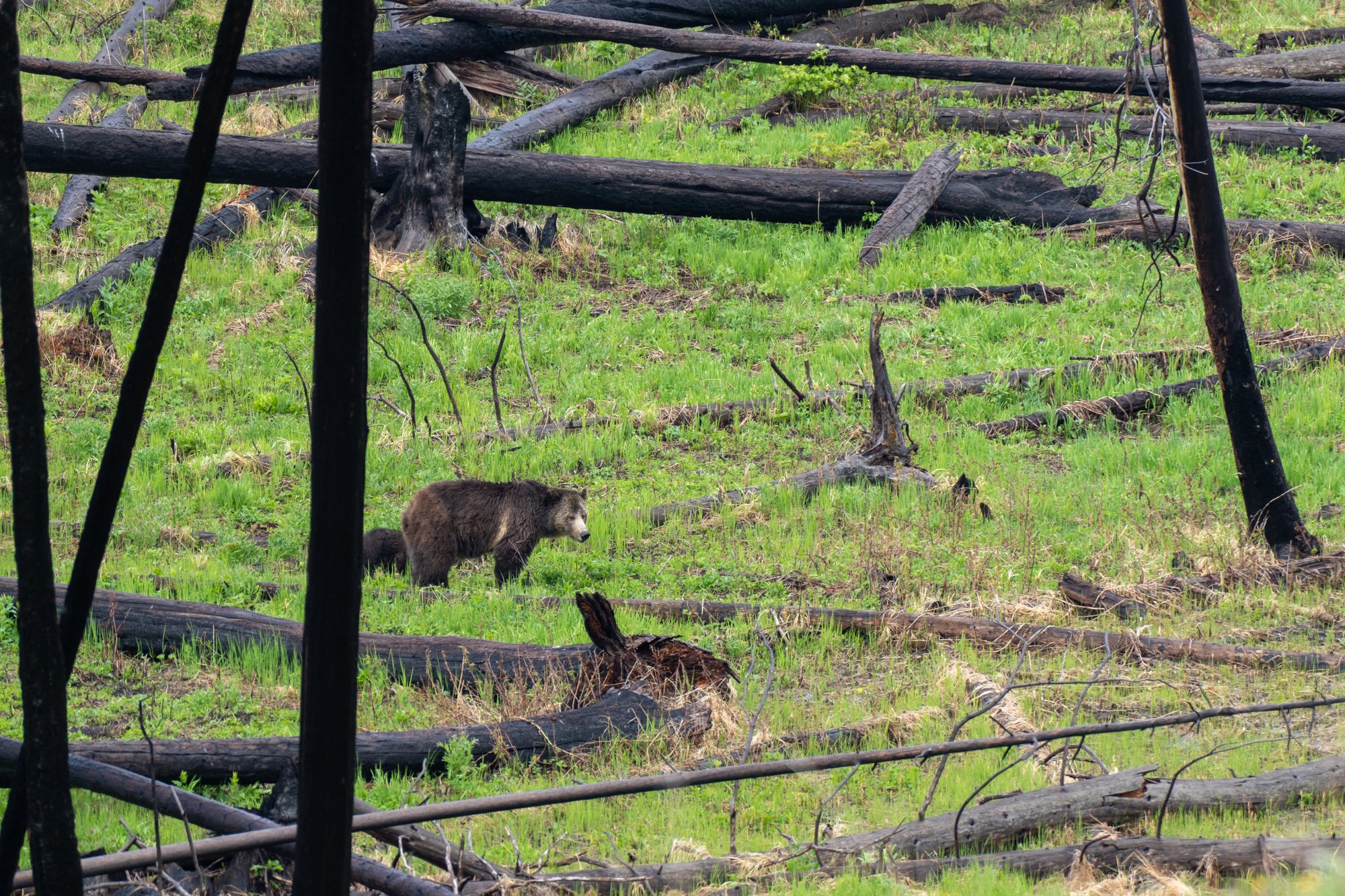 In Yellowstone en omgeving leven zowel zwarte beren als grizzly beren. De zwarte beren zijn wat schuwer en minder snel agressief, maar de grizzly is een berensoort om serieus rekening mee te houden. Tijdens hikes - hoe kort soms ook - kun je altijd een beer tegen het lijf lopen en daar wil je op voorbereid zijn. Met berenspray. Echt, zonder berenspray op pad gaan in Yellowstone is niet slim. Ze waarschuwen niet voor niets overal in het park voor beren en als je vervolgens zo vaak beren ziet langs de weg, dan weet je dat het menens is.