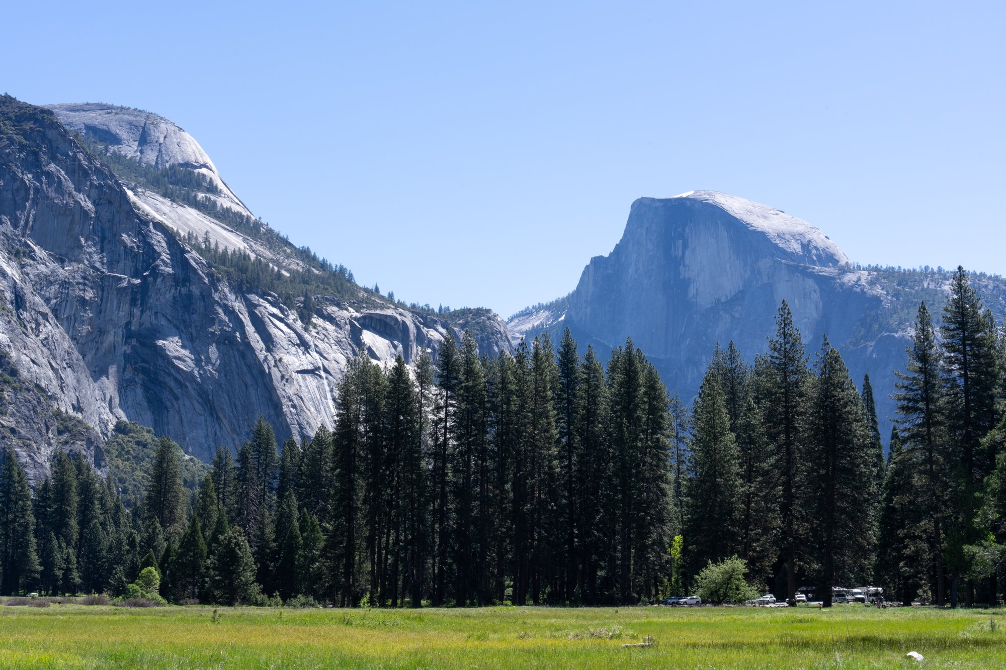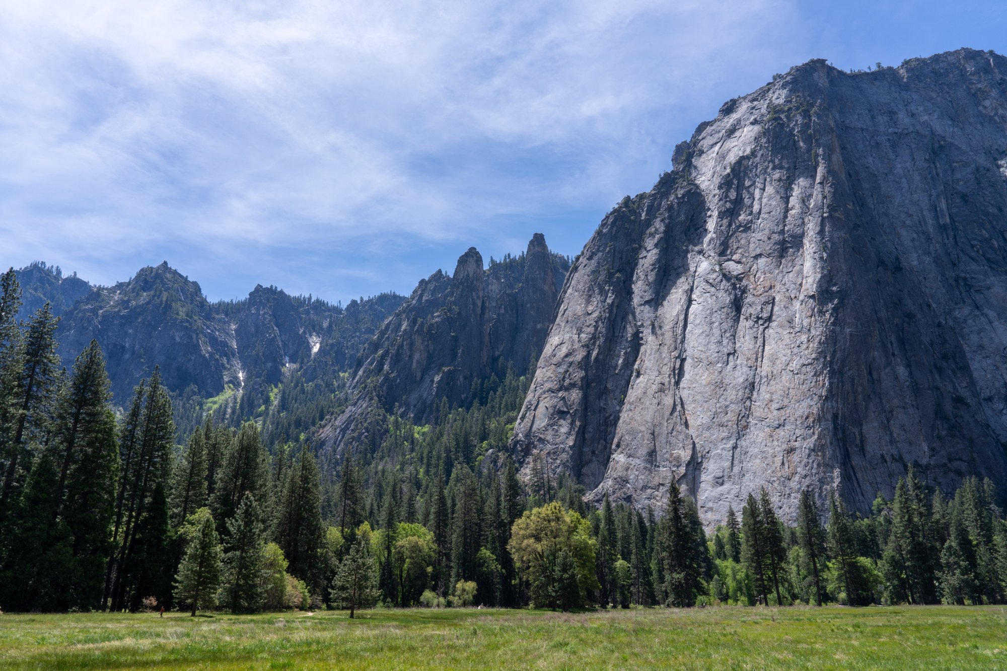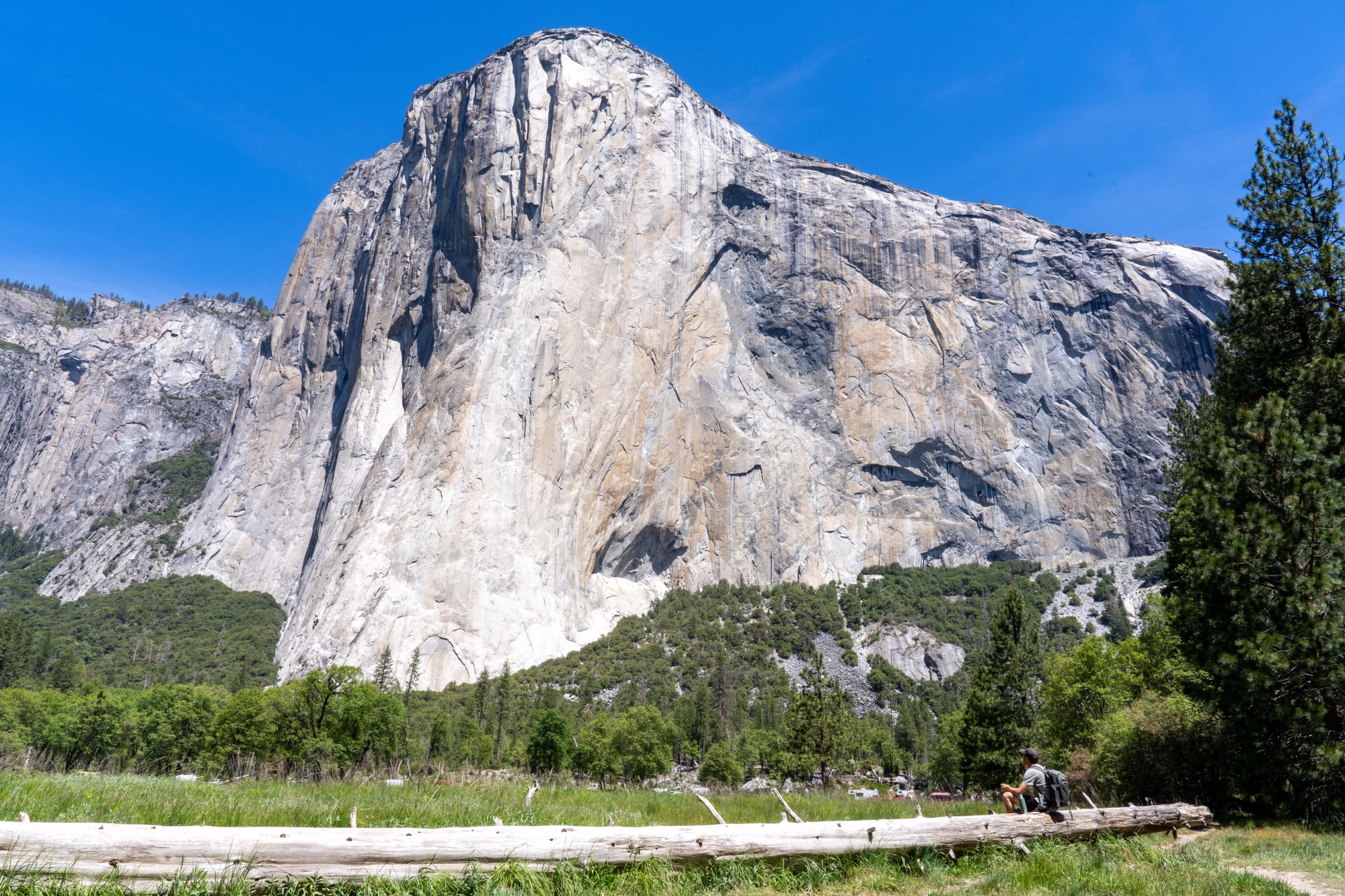 Dat klopt! Vanaf de El Capitan Meadows heb je het allerbeste zicht op El Capitan. Je kunt door het gras lopen om de bergwand van een afstandje te bekijken. En op je foto te krijgen! El Capitan is zo hoog dat dat laatste nog best een uitdaging is.